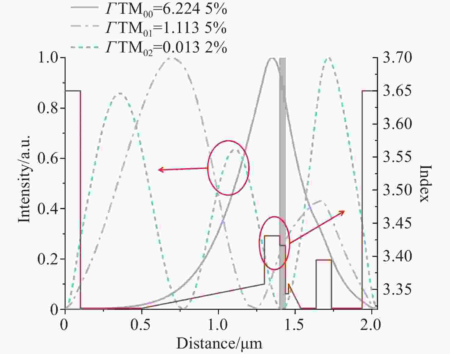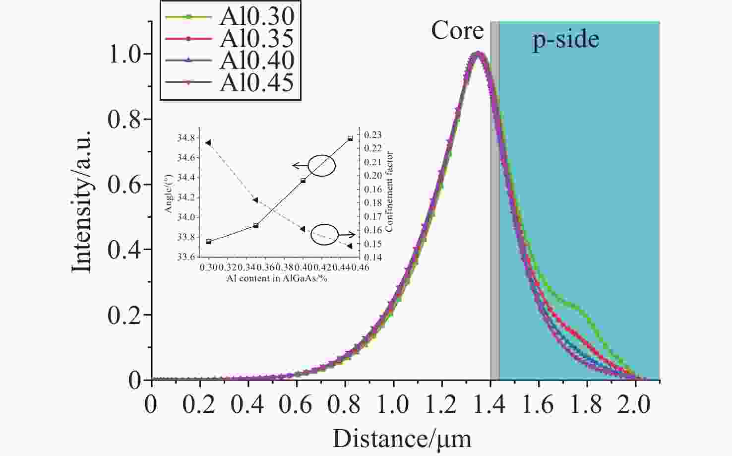 Abstract:A new type of 785 nm semiconductor laser device has been proposed. The thin cladding and mode expansion layer structure incorporated into the epitaxy on the p-side significantly impacts the regulation of grating etching depth. Thinning of the p-side waveguide layer makes the light field bias to the n-side cladding layer. By coordinating the confinement effect of the cladding layer, the light confinement factor on the p-side is regulated. On the other hand, the introduction of a mode expansion layer facilitates the expansion of the mode profile on the p side cladding layer. Both these factors contribute positively to reducing the grating etching depth. Compared to the reported epitaxial structures of symmetric waveguides, the new structure significantly reduces the etching depth of the grating while ensuring adequate reflection intensity and maintaining resonance. Moreover, to improve the output performance of the device, the new epitaxial structure has been optimized. Based on the traditional epitaxial structure, an energy release layer and an electron blocking layer are added to improve the electronic recombination efficiency. This improved structure has an output performance comparable to that of a symmetric waveguide, despite being able to have a smaller gain area.