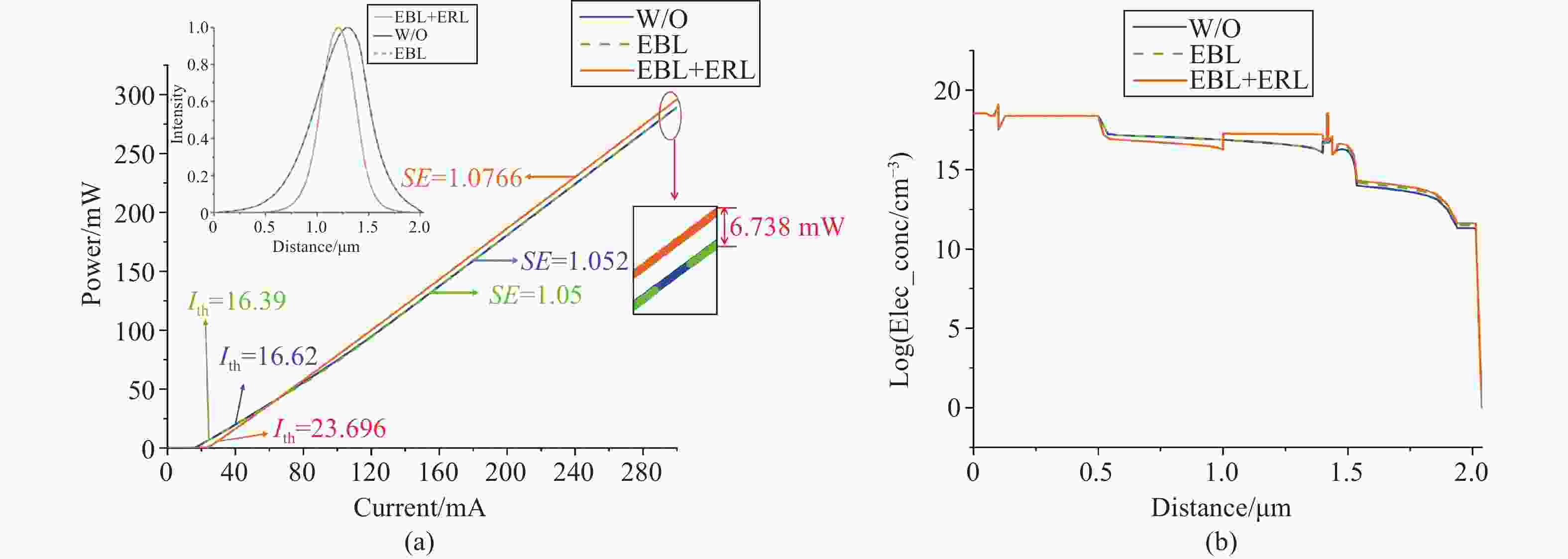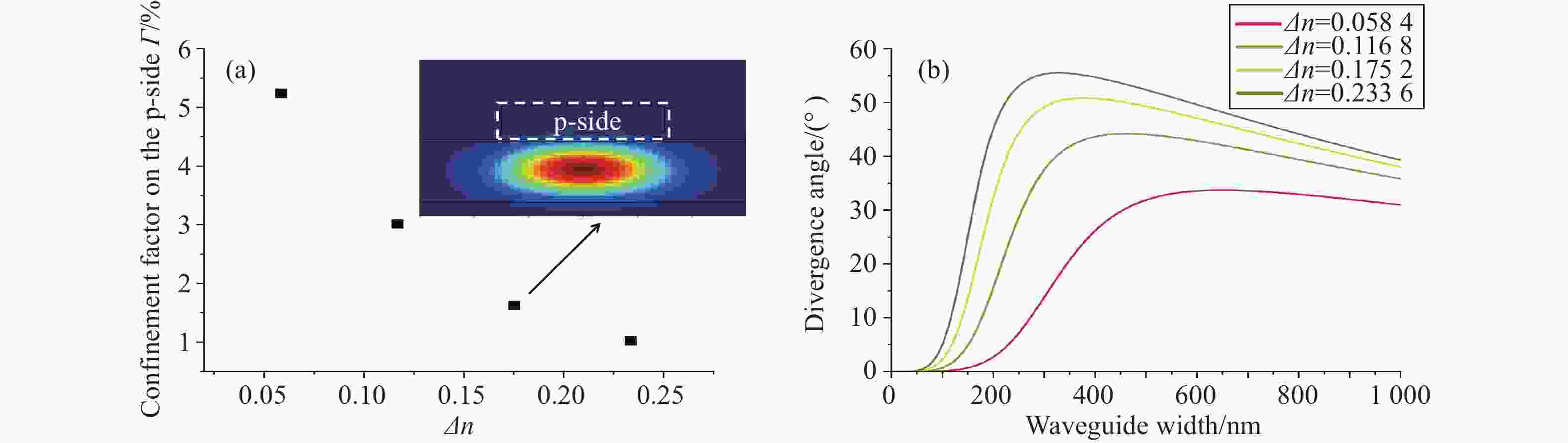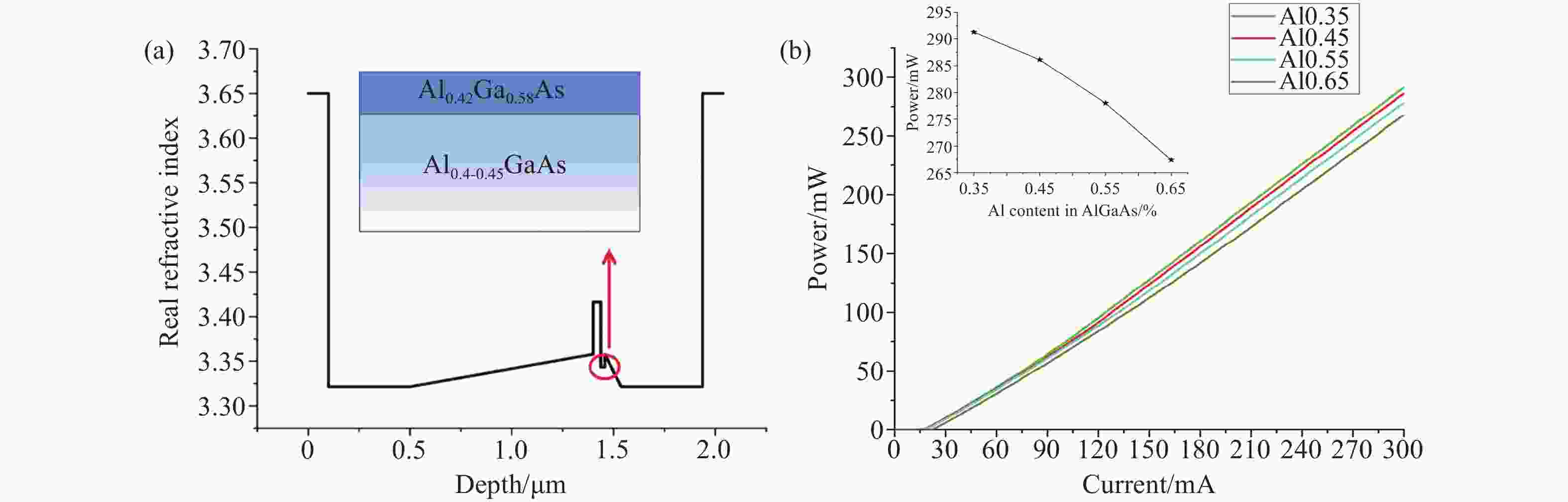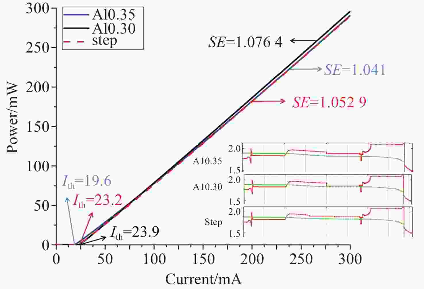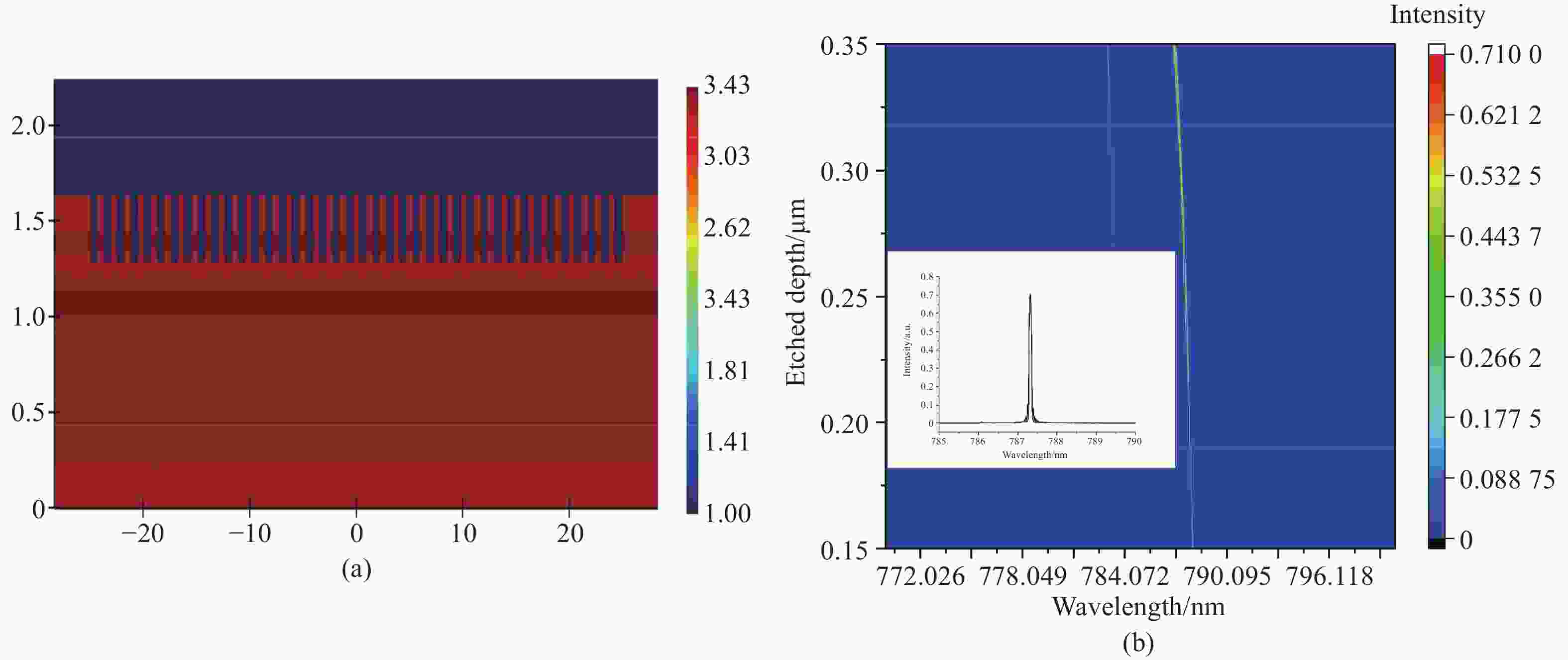 本文提出了一种新型 785 nm 半导体金宝搏188软件怎么用 器件。在 p 侧外延中加入了薄限制层和模式扩展层结构,两者对光栅刻蚀深度的调节有很大影响。p 侧波导层的减薄使得光场偏向 n 侧包层。通过协调限制层的束缚效应,可以调节 P 侧的光限制因子。另一方面,模式扩展层的引入促进了 p 侧限制层上模式的扩展。这两个因素都有助于减少光栅蚀刻深度。与已报道的对称波导外延结构相比,新结构在确保足够反射强度和维持谐振的同时,大大减少了光栅的蚀刻深度。此外,为了提高器件的输出性能,还对新的外延结构进行了优化。在传统外延结构的基础上,增加了能量释放层和电子阻挡层,以提高电子复合效率。改进后的结构虽然增益面积较小,但输出性能却与对称波导相当。