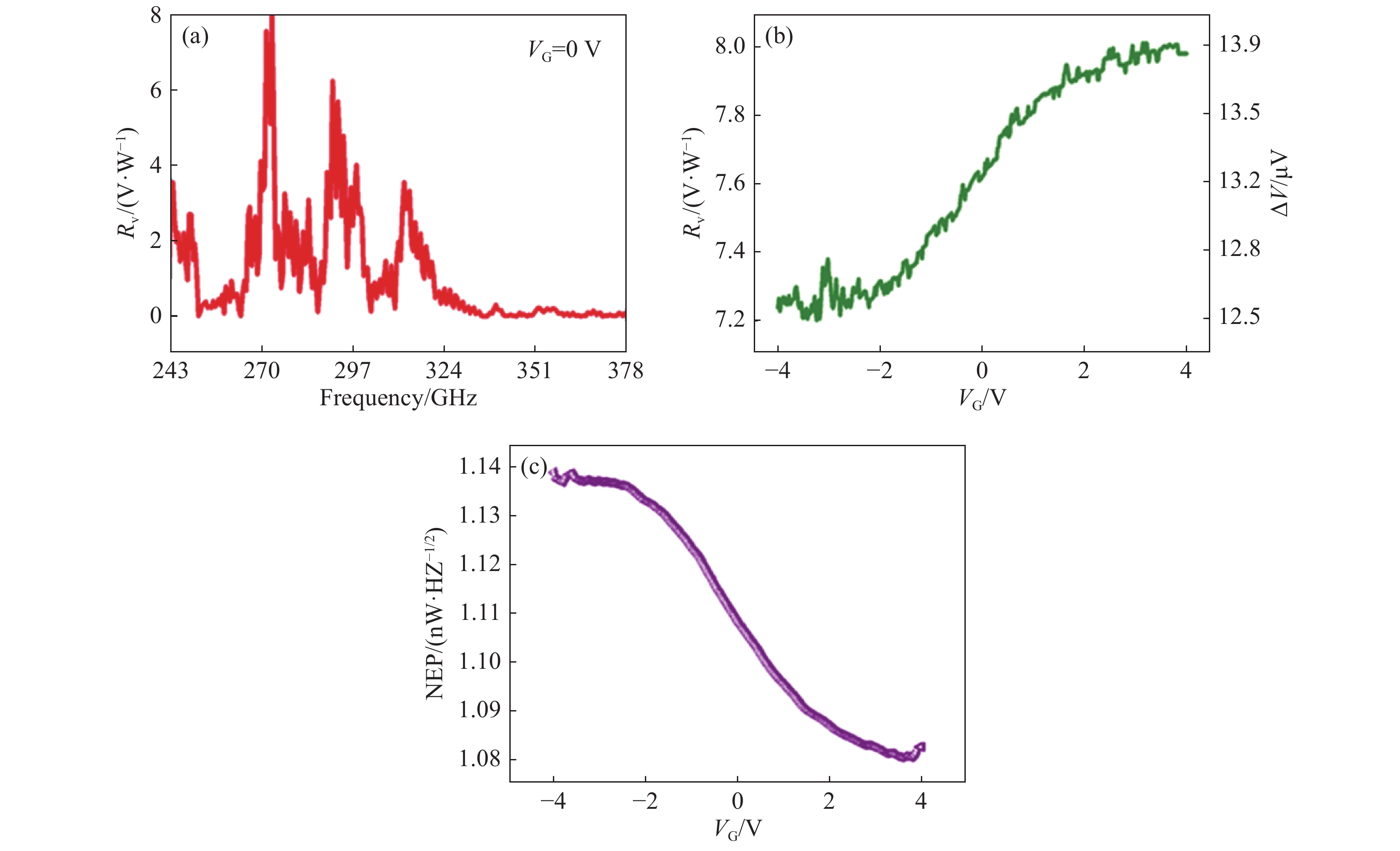 混合结构的石墨烯/半导体光电晶体管因其超高的响应度而备受关注。然而,该类光电晶体管通过源-漏电极测试得到的比探测率(D*)容易受到1/f噪声的限制。本文制备了混合结构的石墨烯/GaAs光电探测器,通过源-栅电极测得D*大约为1.82×1011 Jones,与通过源-漏电极测量相比,D*提高了约500倍。这可归因于界面上肖特基势垒对载流子俘获和释放过程的屏蔽作用。此外,探测器的上升时间和下降时间分别是4 ms和37 ms,响应速度相应地提高了2个数量级。该工作为制备高比探测率和高速的光电探测器提供了一种新的思路。