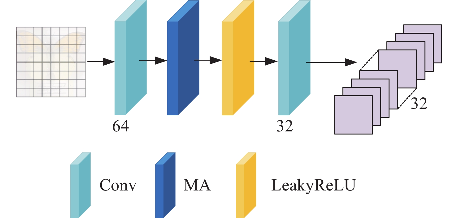 随着光谱成像技术的飞速发展,使用多光谱滤光片阵列(multispectral filter array,MSFA)采集多光谱图像的空间和光谱信息已经成为研究热点。如何利用低采样率且具有强频谱互相关性的原始数据进行重构成为制约其发展的瓶颈。本文基于一种含有全通波段的8波段4×4 MSFA,提出了一种空谱联合的多分支注意力残差网络模型。使用多分支模型对各个波段插值后的图像特征进行学习。利用本文设计的空间通道注意力模型对8个波段和全通波段的特征信息进行联合处理。该模型通过多层卷积和卷积注意力模块以及残差补偿机制,有效减小了各波段的颜色差异,增强了边缘纹理等相关特征信息。对于初步插值的全通波段和其他波段的特征信息,通过无需进行批量归一化的残差密集块对多光谱图像空间和光谱相关性进行特征学习,以匹配各个波段的光谱信息。实验结果表明,对于在D65光源下测试图像,本文所提模型的峰值信噪比、结构相似度和光谱角相似度分别较最先进的深度学习方法提升了3.46%、0.27%和6%。该方法不仅减少了伪影还获得了更多的纹理细节。