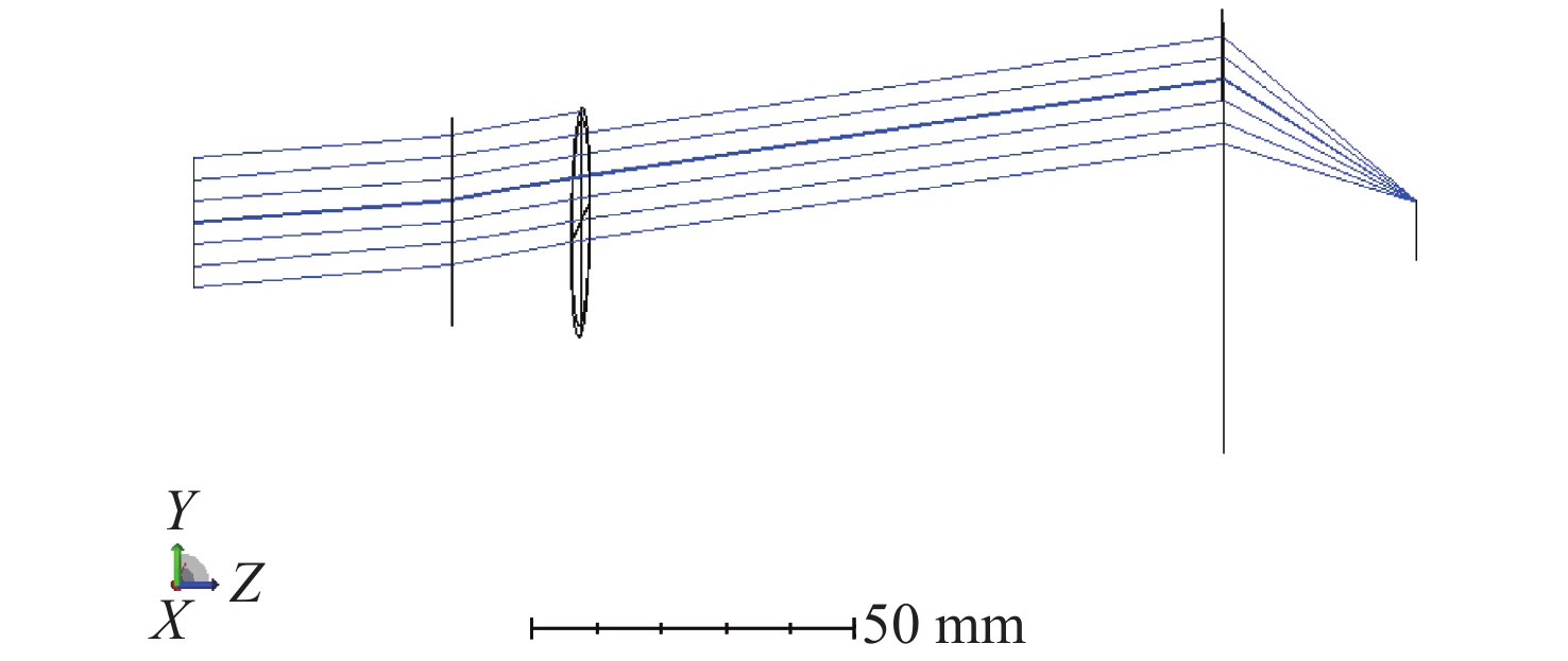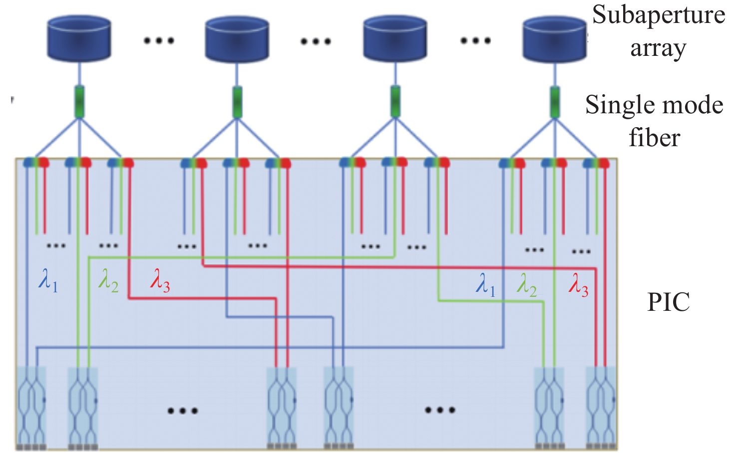 光子集成干涉成像系统一般是在子孔径焦平面处加单模光纤阵列,通过接收不同视场角的光束完成大视场拼接成像,但直接采用光纤阵列会导致成像视场不连续、子孔径焦距变长、厚度大幅度增加。针对以上问题,本文提出了一种结合微透镜阵列和光纤阵列对子孔径像面细分的方法以实现视场无缝拼接,并通过摄远物镜和三透镜空间压缩板组合大幅度降低了子孔径阵列的整体厚度。设计结果表明:通过在光纤阵列前加65×65的微透镜阵列对光束进行二次聚焦能够实现系统视场无缝拼接,视场扩大65倍后,全视场为0.0489°;可见光入射时单模光纤阵列中各光纤中心空间光耦合效率不低于40%;在加入空间压缩板压缩自由空间光路后,系统的整体厚度压缩了1个数量级。该系统在实现光子集成干涉成像系统大视场无缝拼接成像的同时,为解决超长焦距镜头过厚的问题提供了新的思路。