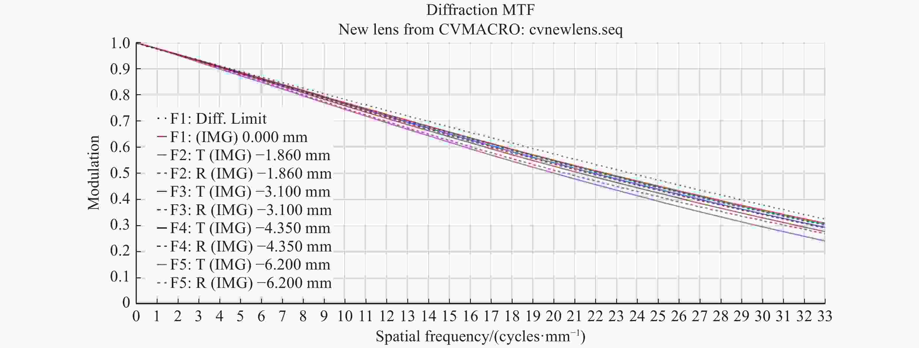 Figure 3.  The MTF curve diagram of the long-wavelength optical system