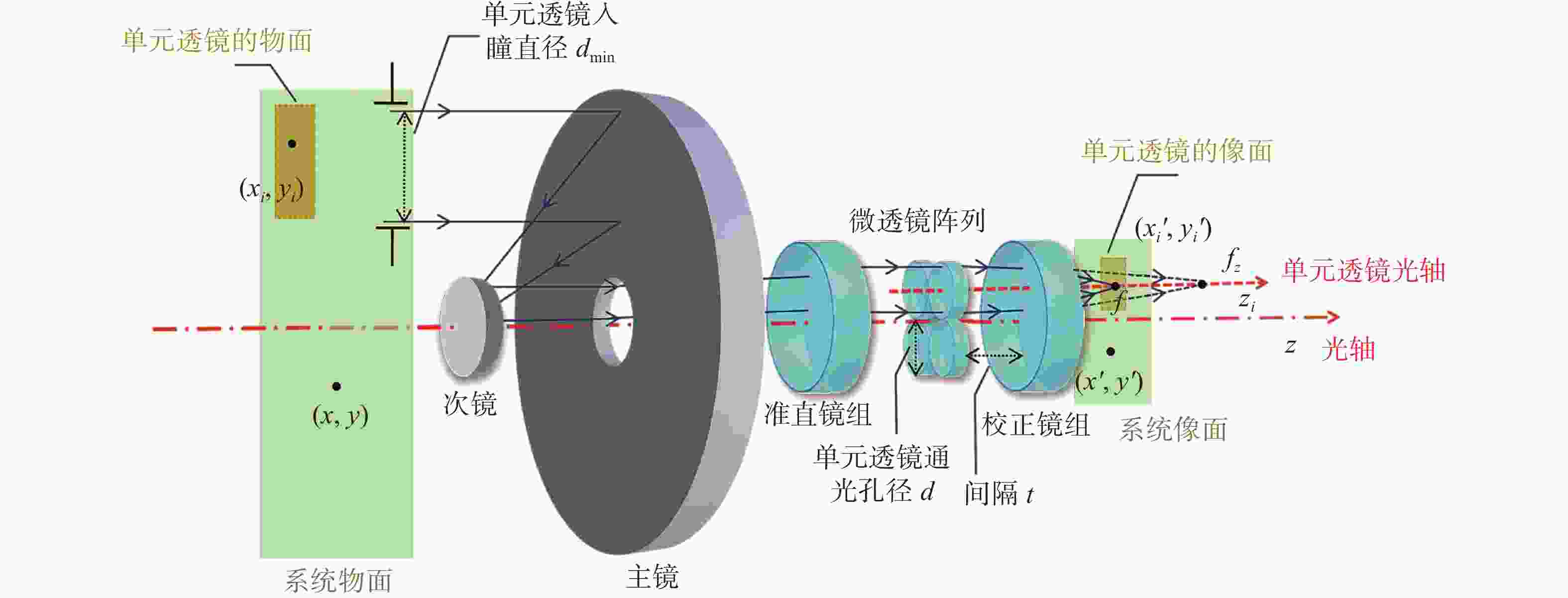 针对传统偏振光谱成像方法难以适用于弹载平台的难题,本文提出了一种基于阵列光学的快速多维度成像制导光学方案。构建了通道分辨率与望远放大倍率的关联模型,实现了微透镜阵列、光谱滤光阵列和微纳偏振阵列探测器参数的精准匹配和高效利用。基于常规导引头和工业偏振探测器,设计了包含球形整流罩的多维度成像制导光学系统。系统采用4×4光场分割布局,在可见光波段内形成16个光谱通道,光谱分辨率为16 nm,实现了单光路、单探测器条件下同时高效获取0°、45°、90°、135° 4个偏振方向偏振光谱图像数据。系统整体焦距为150 mm,筒长为145 mm。仿真结果表明,系统16个通道下全视场调制传递函数在奈奎斯特频率处均接近衍射极限,成像质量良好,满足弹载目标多维度探测与识别需求。