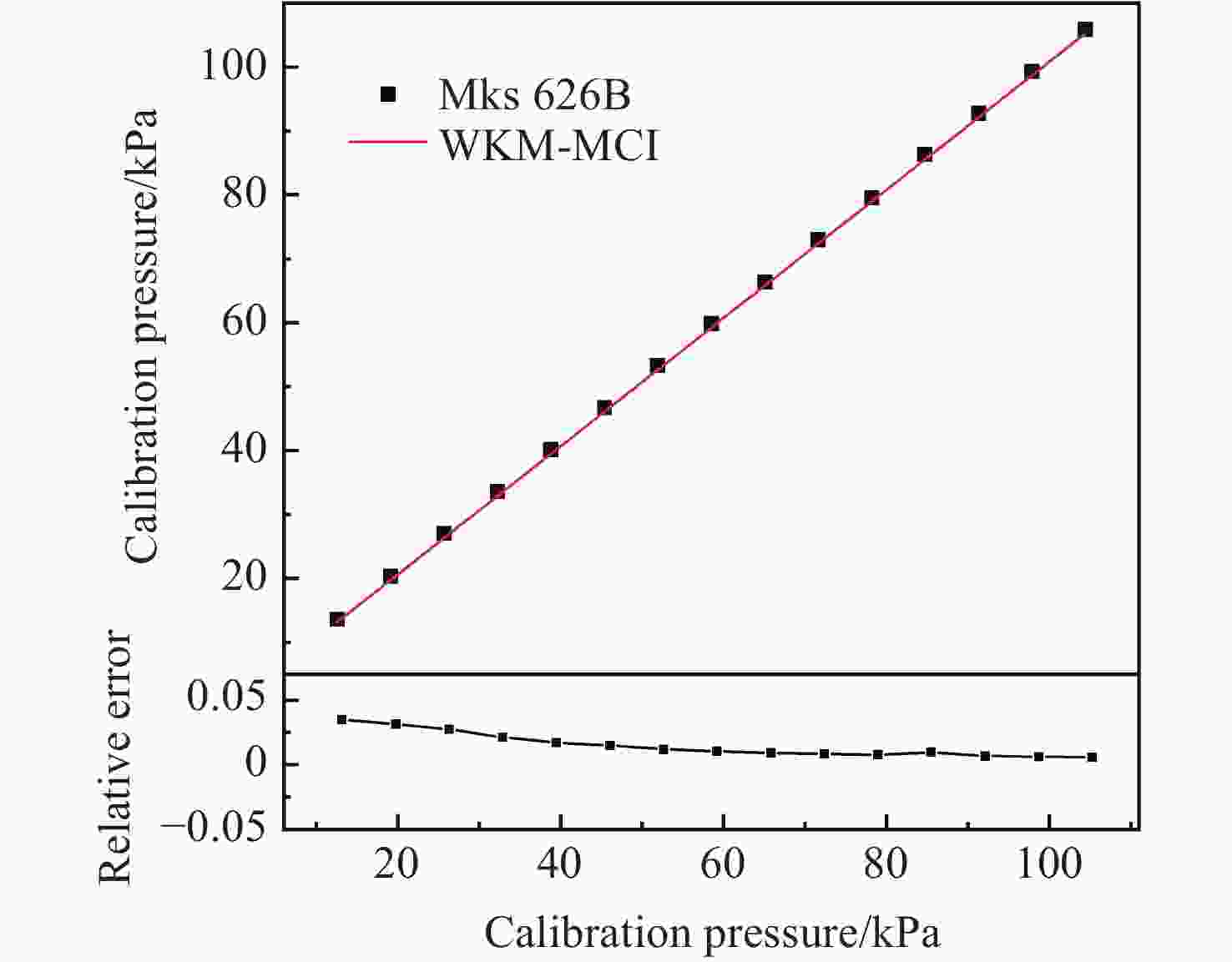 Figure 6.  Pressure calibration and the relative errors between Mks 626B and WKM-MCI