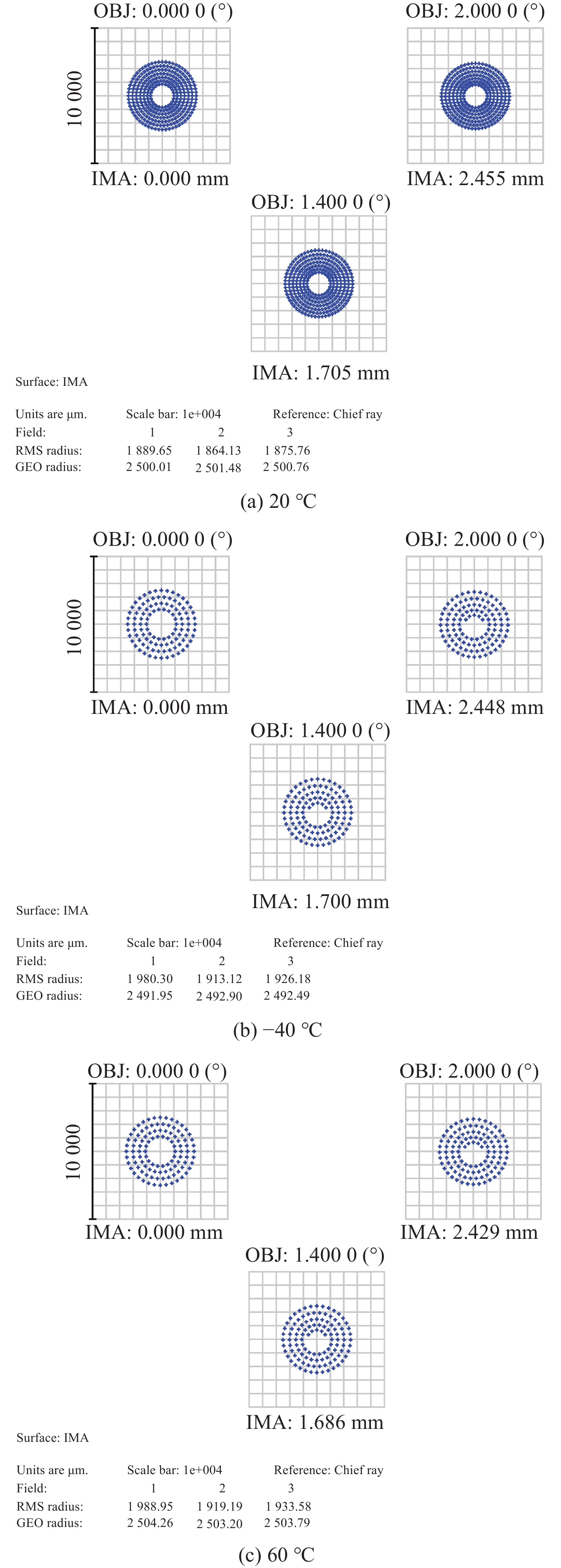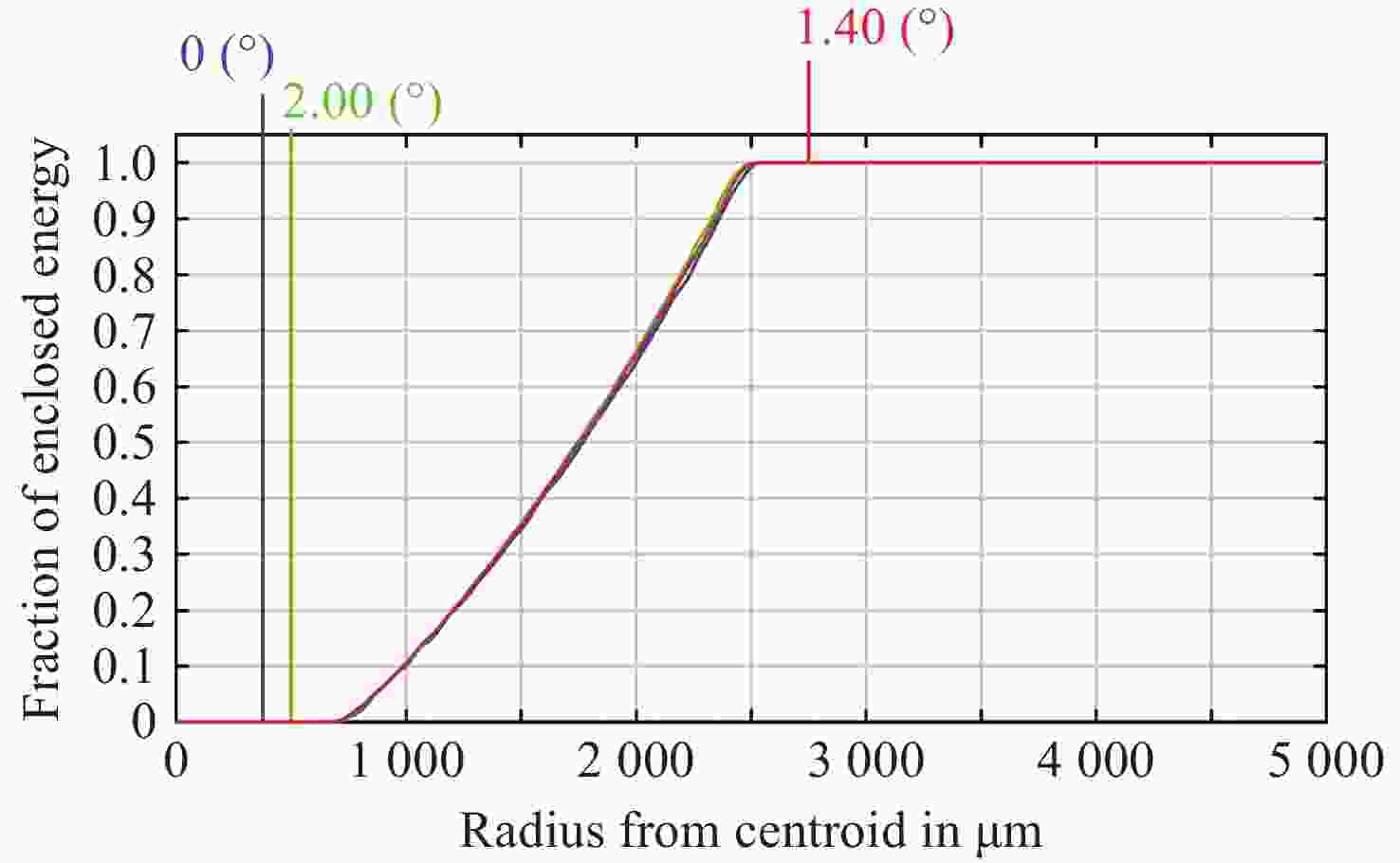 为降低金宝搏188软件怎么用 制导导引头的失调角误差,需要在光学设计方面优化能量信号质量。本文基于像差理论结合光学设计软件的计算功能获得设计起点,分别从光学结构形式和像差平衡优化角度入手对光学系统进行逐步迭代设计。通过控制像方远心,增强光斑的对称性以提高测角精度;通过对光学塑料材料的性能分析,论证了采用光学塑料制造导引头光学结构的可行性。最终完成焦距为71.6 mm,F/#为1的光学系统设计,边缘视场主光线远心度小于6 mrad。在工作温度范围内,光斑尺寸的稳定性优于0.4%;全视场最大畸变小于0.5%,在±2°视场范围内的光斑线性度与能量响应一致性均能满足精确制导要求。基于最小初阶像差的结构设计思路可以用于折反系统的优化,该方法可为同类导引头光学结构设计提供借鉴。