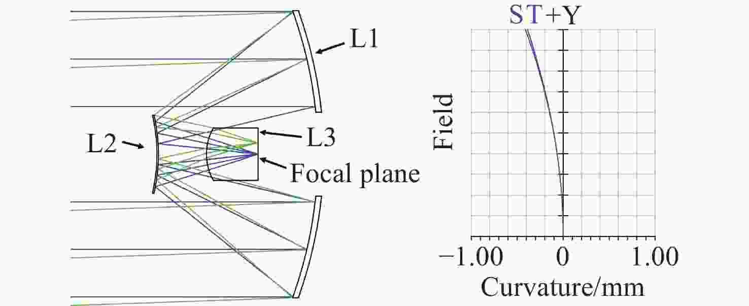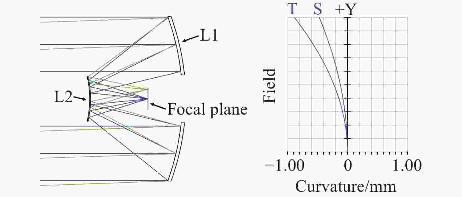 Figure 6.  Initial structure and field curvature of a catadioptric hybrid system