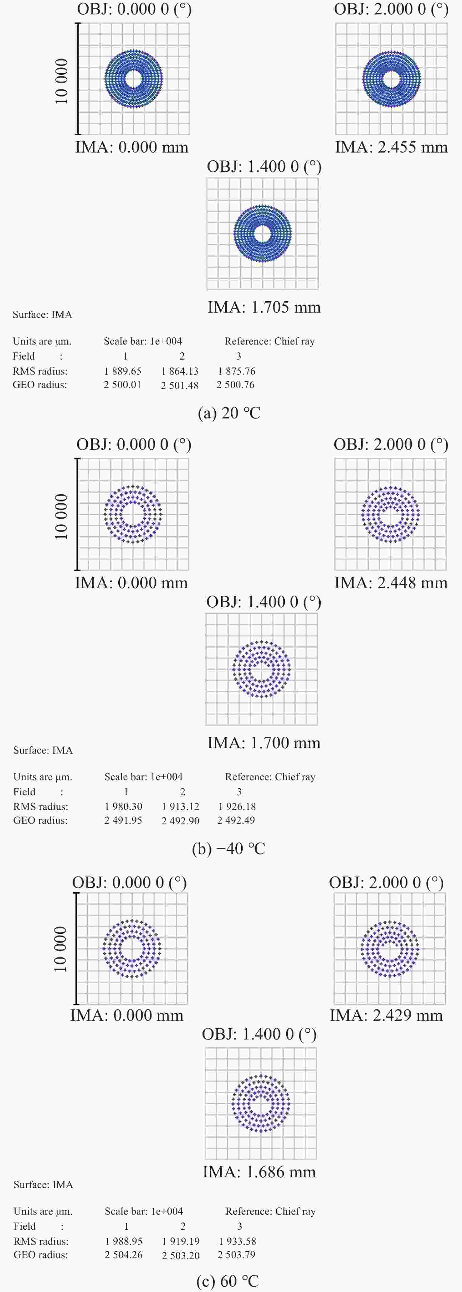 Abstract:In order to minimize misalignment angle errors in laser-guided seekers, it is necessary to optimize the quality of energy signals through advanced optical design techniques. The initial design parameters were obtained through the integration of aberration theory and state-of-the-art optical design software. The optical system is progressively designed through iterative processes from the perspectives of the optical structural forms and optimization of aberration balancing. To enhance angular measurement precision, we improved the symmetry of the light spot by carefully controlling the image-side telecentric condition. Furthermore, a comprehensive performance analysis of optical plastic materials demonstrated the viability of using these materials in the manufacture of the seeker’s optical structure. Our final optical system design boasts a focal length of 71.6mm and an F/# of 1, with the edge field chief ray telecentric maintained below 6 mrad. In the operating temperature range, the stability of spot size is better than 0.4% and the maximum distortion of the full field of view is less than 0.5%. Notably, within a ±2° field of view, both the light spot linearity and energy response consistency meet the stringent requirements for precision guidance. The structural design methodology we employed, which focuses on minimizing primary aberrations, can be effectively applied to the optimization of catadioptric systems, thus serving as a valuable reference for the optical structure design of similar seekers.