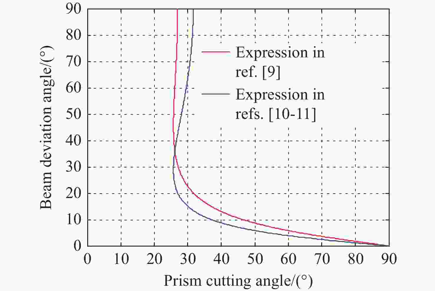 Figure 2.  Relationship between cutting angle and beam deviation angle in Ref. [9] and Refs. [10-11]