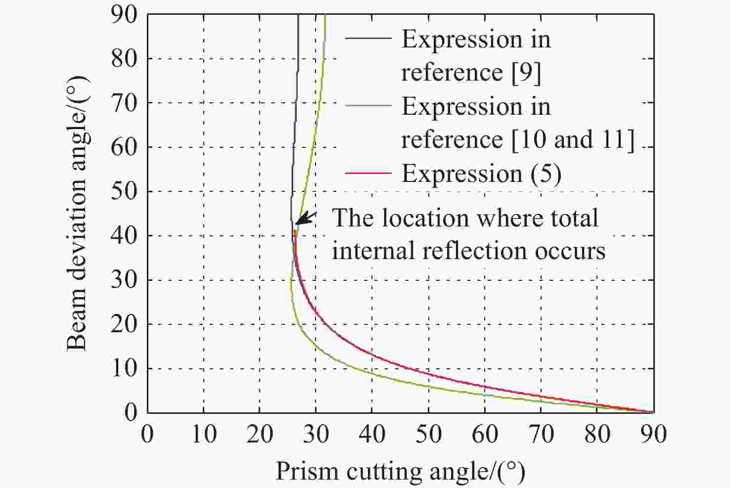 Figure 3.  Relationship between cutting angle and beam deviation angle in this paper