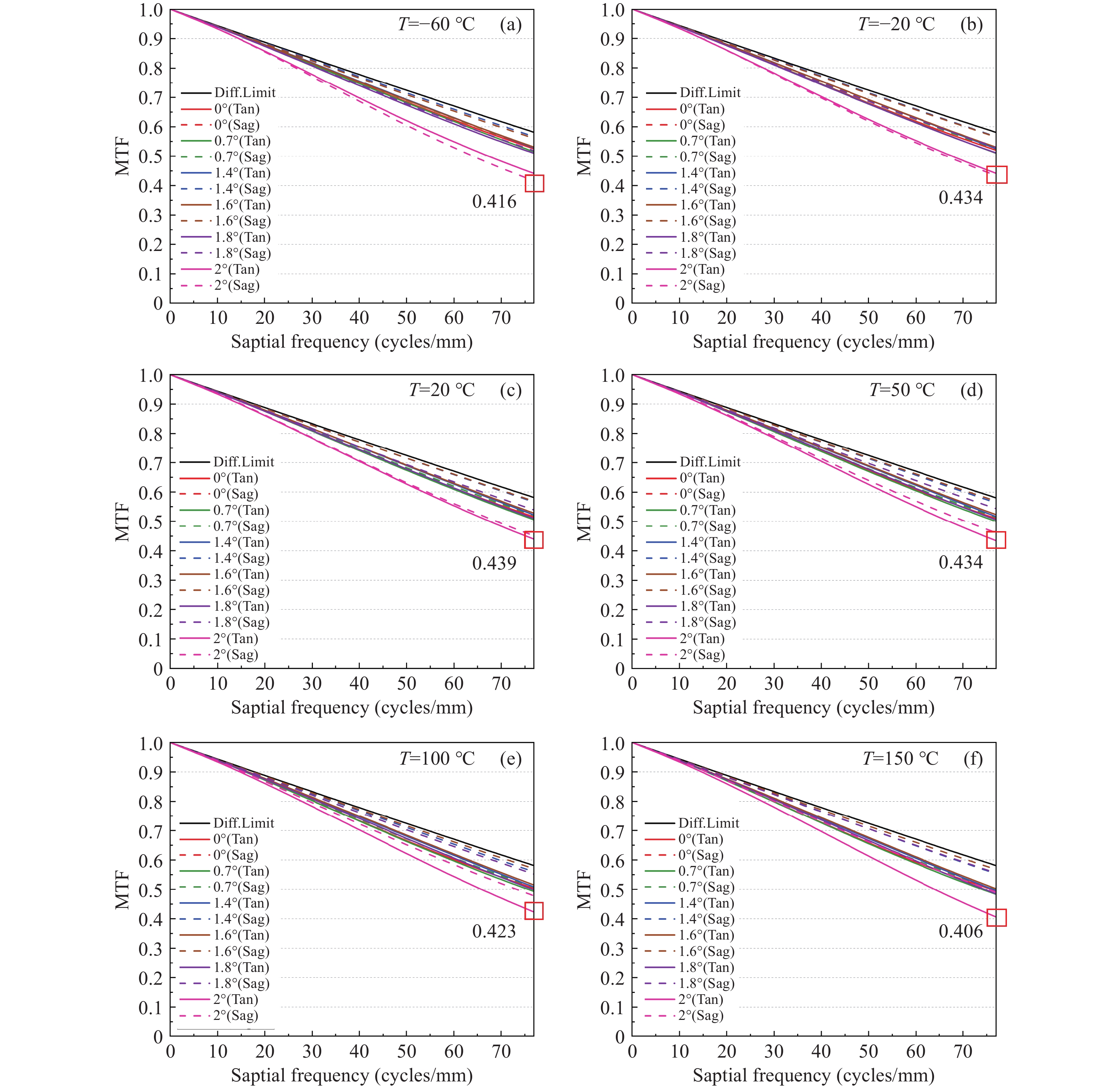 Temperature/°C −60 −20 20 50 100 150 The lowest MTF value 0.452 0.473 0.475 0.475 0.483 0.481 -