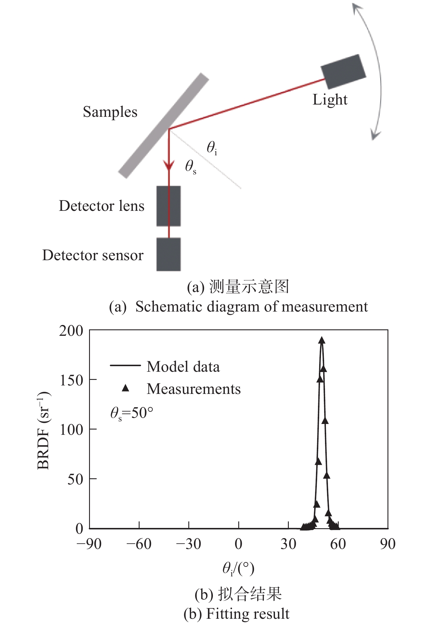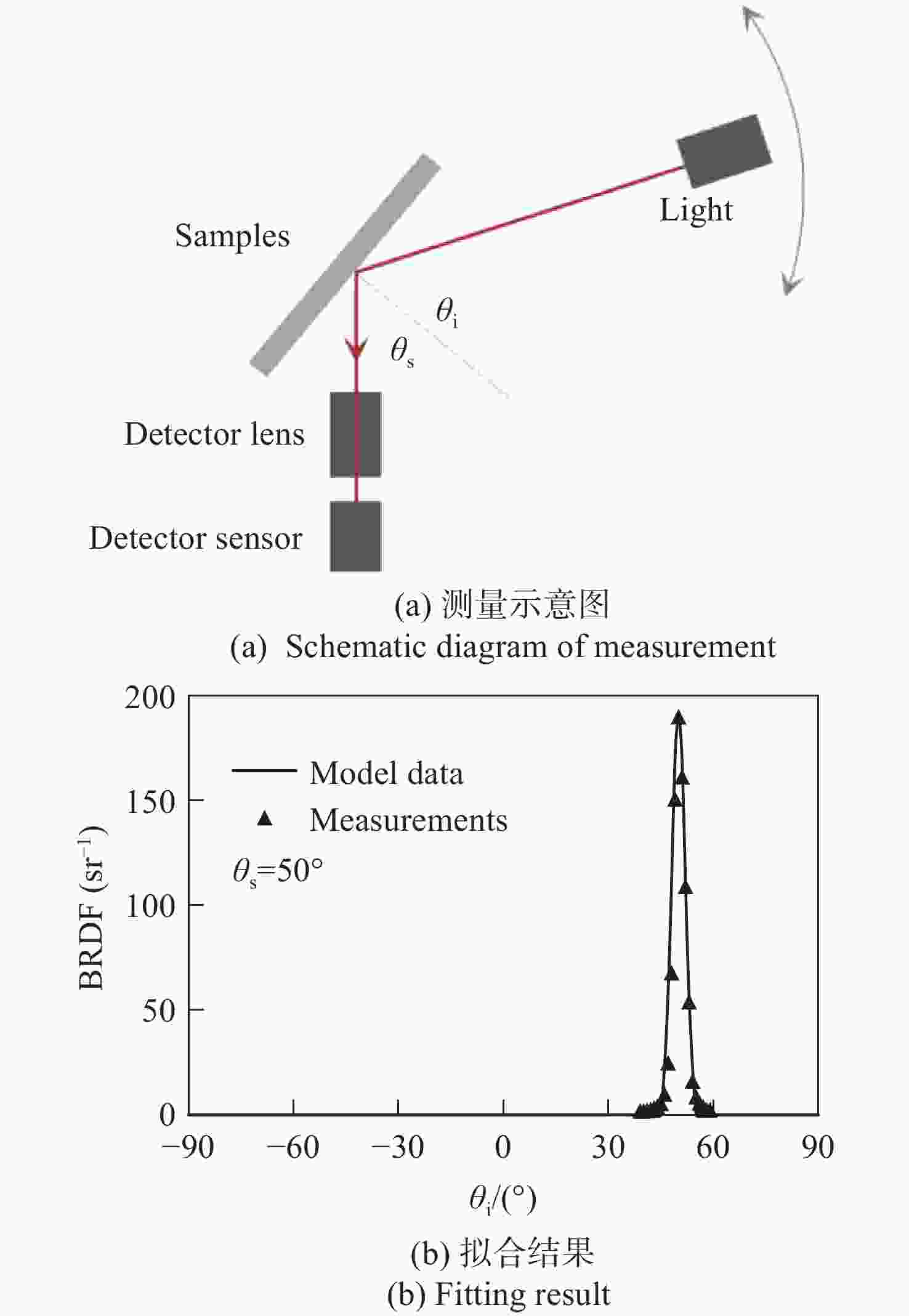 图 2  镜片BRDF测量与拟合结果