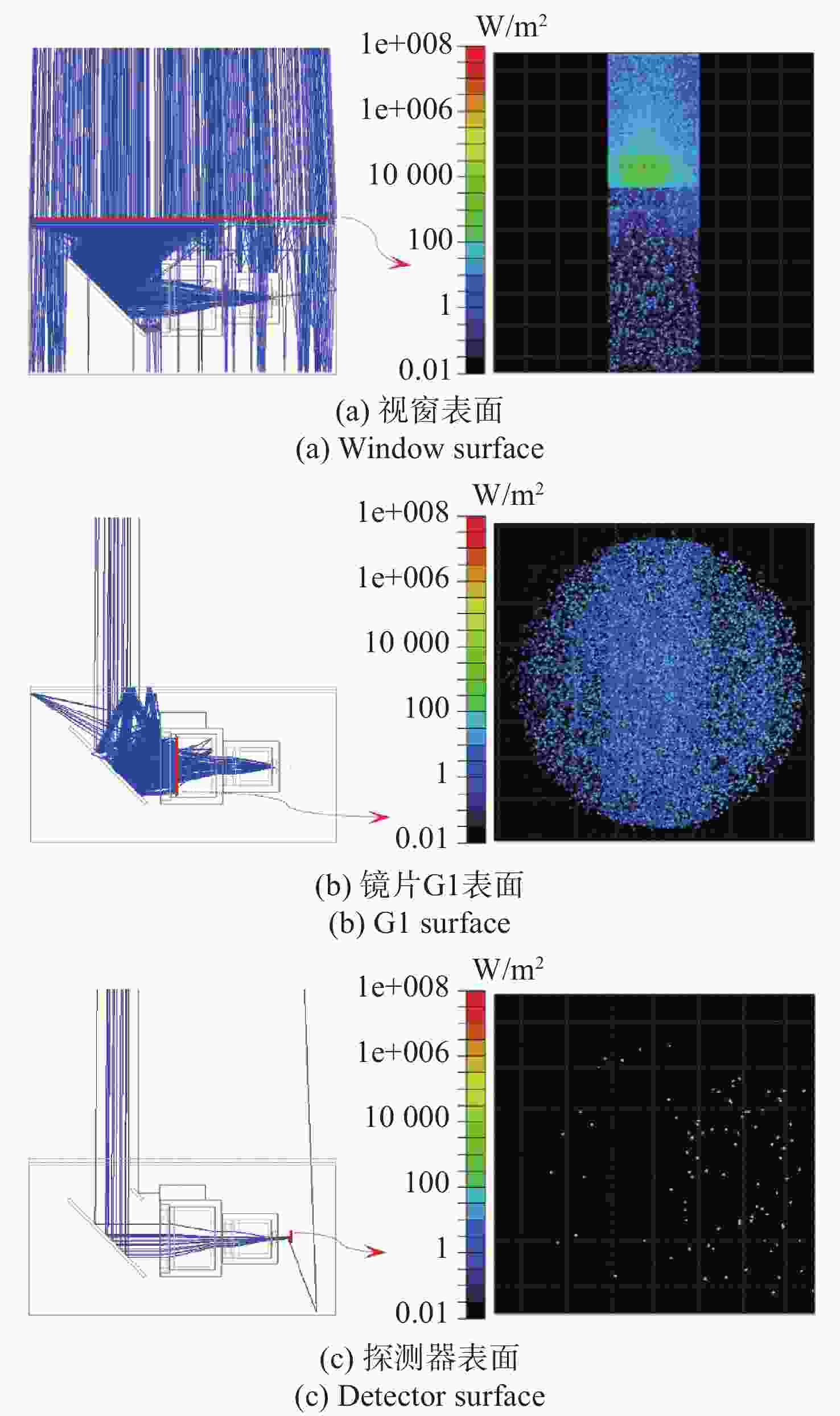 图 6  机盒内光线路径及不同表面的辐照度
