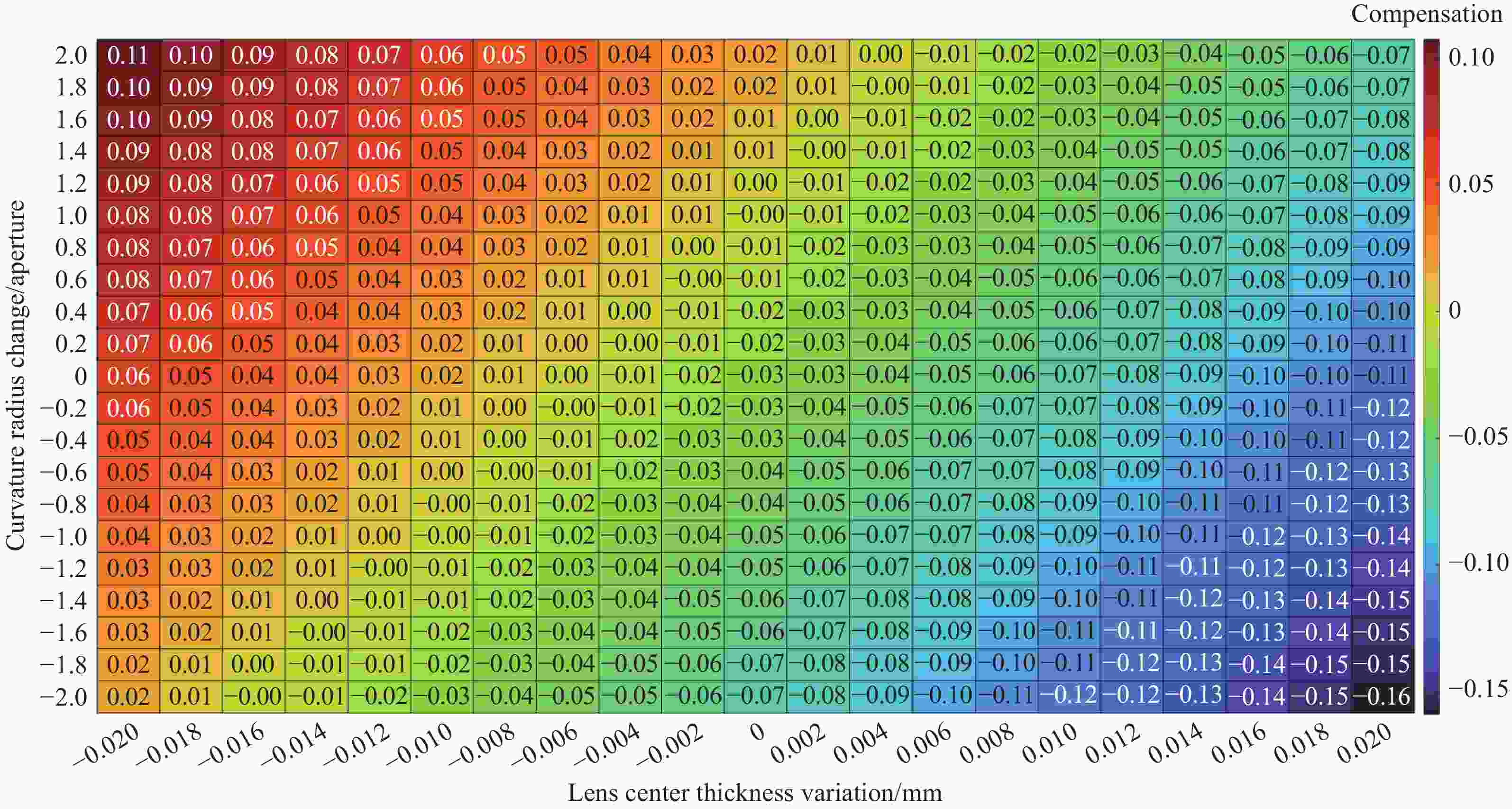 Figure 10.  The compensation of the front and rear group spacing varies with material and processing tolerances