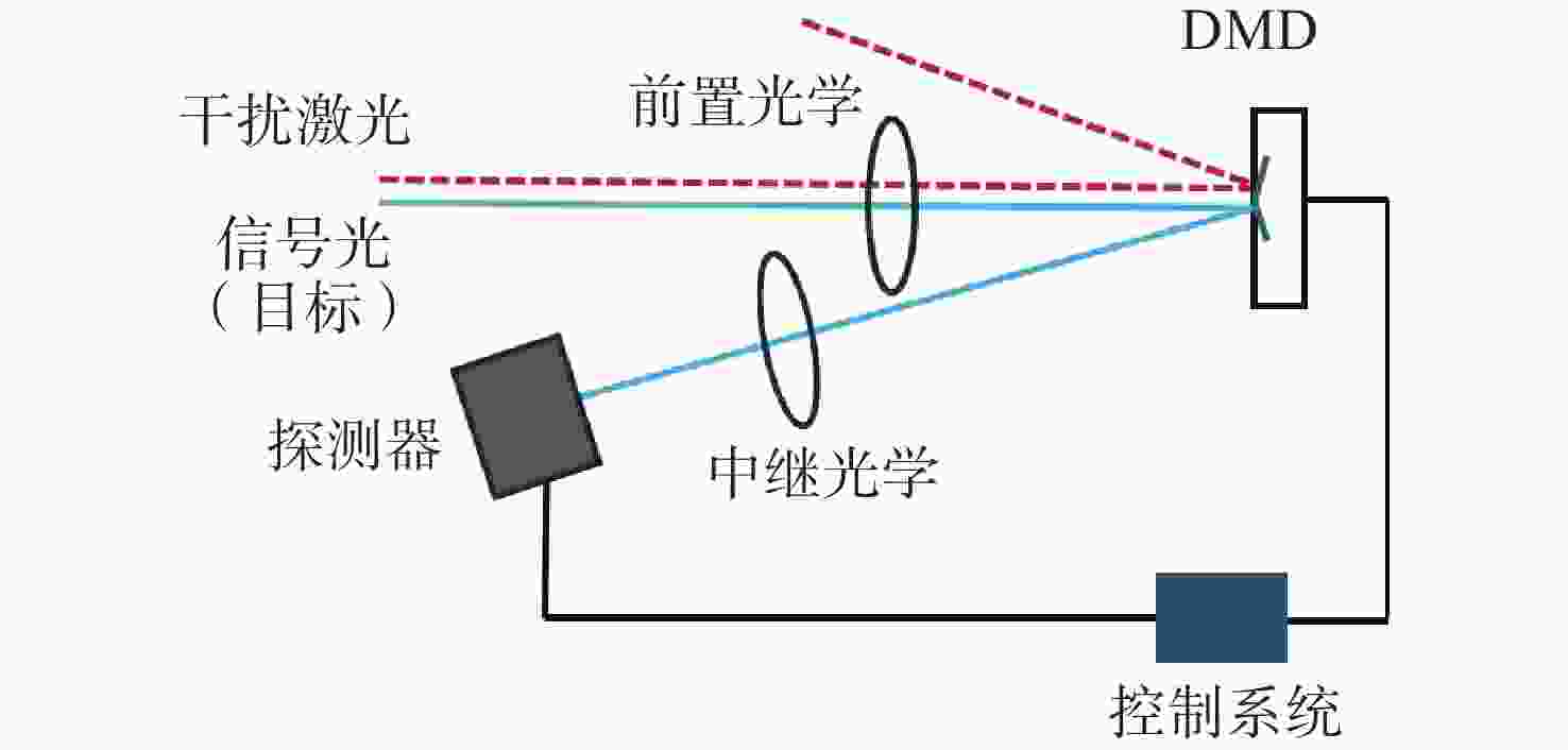 为应对强金宝搏188软件怎么用 对光电探测器成像的干扰与致眩威胁,本文提出了一种基于数字微镜器件(DMD)区域翻转的动态金宝搏188软件怎么用 干扰抑制方法。该方法通过一个二次成像光路,将DMD置于一次像面,通过实时识别并翻转对应于金宝搏188软件怎么用 干扰区域的微镜,将高功率干扰能量偏转出主光路,从而在保护探测器的同时保留大部分视场的有效图像信息。首先,通过光学仿真验证了该方案的可行性,随后搭建实验平台进行了系统性测试。此外,本研究还量化控制DMD翻转的掩模半径对抑制效果的影响,证实了当翻转区域大于干扰光斑时能达到最优抑制效果。实验结果表明,DMD区域翻转对不同功率和不同入射角的金宝搏188软件怎么用 干扰均能实现有效抑制。与无抑制时相比,探测器接收的干扰功率显著降低:在金宝搏188软件怎么用 离轴入射时可实现超过28.5 dB的抗金宝搏188软件怎么用 干扰阈值提升,当金宝搏188软件怎么用 干扰平行于光轴入射时可实现超过30 dB的抗金宝搏188软件怎么用 干扰阈值提升。与传统图像处理方法相比,该方法在强光干扰场景下能尽可能保留图像信息量。该技术为光电系统在强光干扰环境下保持稳定成像提供了高效、简洁的解决方案。