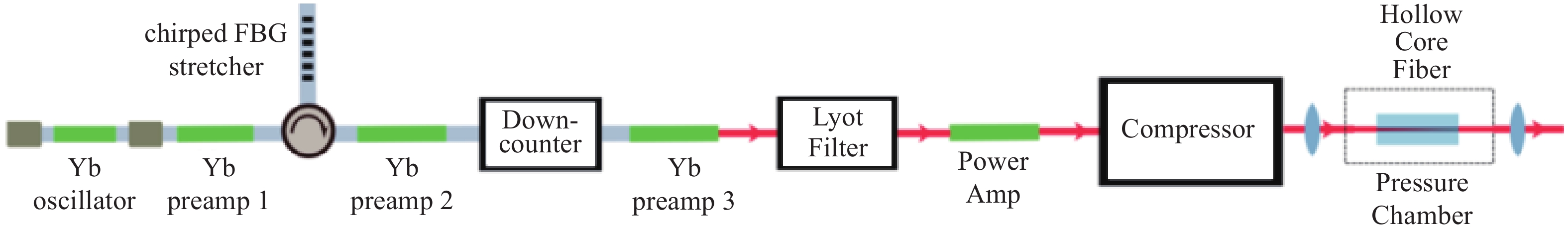 FRANKINAS S, MICHAILOVAS A, RUSTEIKA N, et al. Efficient ultrafast fiber laser using chirped fiber Bragg grating and chirped volume Bragg grating stretcher/compressor configuration[J]. Proceedings of SPIE, 2016, 9730: 973017. doi: 10.1117/12.2214720