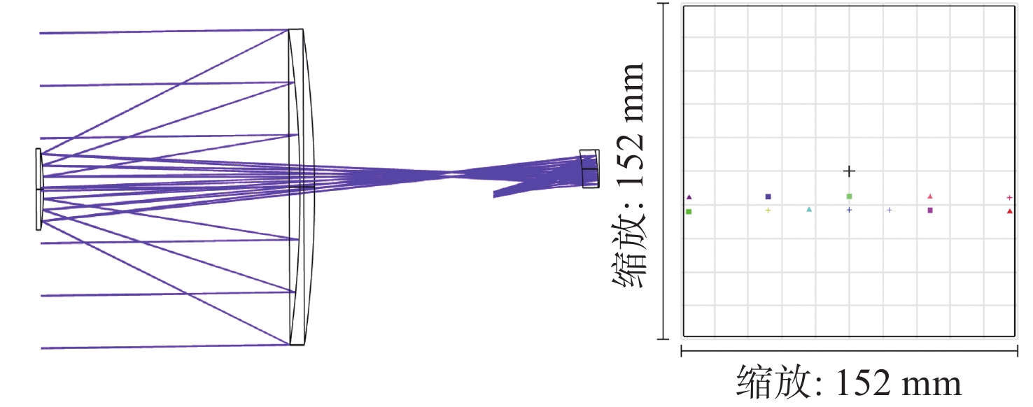 In order to simulate dynamic scenes with high accuracy and high reliability, a short-wave infrared (SWIR) and mid-wave infrared (MWIR) multiband catadioptric common-aperture optical system is designed. The system combines the advantages of reflection, refraction and common-aperture optical path, and is independently designed into the main optical system, short-wave optical system and mid-wave optical system. The initial structure of the optical system is obtained according to theoretical calculation, and the optical parameters are further detailed by optical design software. Finally, according to the principle of pupil matching, the sub-systems are combined. The image quality of the system is further optimized and the rationality of the system design is verified by the simulation of modulation transfer function (MTF) and distortion. The designed short-wave optical system has a field angle of ±0.107°, a focal length of 2500mm, an entry pupil size of 300mm, MTF reaches the diffraction limit, and the distortion is less than 0.3%. The field angle of the mid-wave optical system is ±0.65°, the focal length is 750mm, the entry pupil size is 300mm, the MTF is close to the diffraction limit, and the distortion is less than 1%. The system has good image quality, small size and strong practicability, and has great application potential in the field of photoelectric tracking and space detection.