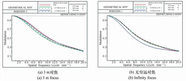 为解决目前大多数紫外成像仪存在的定位和指向精度差、色差较大、分辨率及光能利用率不足等问题,设计了一款高分辨率的大孔径消色差紫外光学系统。首先,根据电晕放电检测的应用需求,提出了紫外光学系统的总体设计。然后利用熔石英及氟化钙两种材料的不同色散特性,根据改进的双胶合透镜结构设计了一款大孔径的消色差紫外光学系统,并对该系统进行了公差分析。设计的紫外光学系统在全视场全探测范围内点列图均方根直径 < 0.08 mm,分辨率为20 lp/mm,满足电力行业中对电晕探测的需求。