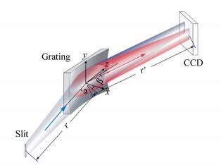 近边X射线吸收精细结构(NEXAFS)谱包含了吸收原子的局域结构信息,由于其适用范围广,灵敏度高,已经成为研究物质结构的重要手段之一。为了研究有机物的碳1s NEXAFS谱,本文基于气体金宝搏188软件怎么用 等离子体X射线光源,采用具有平场特性的凹面变线距光栅作为分光元件,面阵CCD作为光谱探测器,设计了一台小型掠入射式近边X射线吸收谱仪。通过优化光栅和CCD的装配方案,得到了入射角88.6°的装配参数。利用光线追迹法分析了谱仪的分辨率,该谱仪工作波段2~5 nm,在4.4 nm处分辨率可达666。通过分析各结构参量误差对谱线半高宽的影响发现,半高宽对入射角的误差最为敏感,优化的装配方案可以实现入射角的高精度调节。利用氮气等离子体光谱测试了光谱仪的性能,结果显示分辨率达到设计指标。