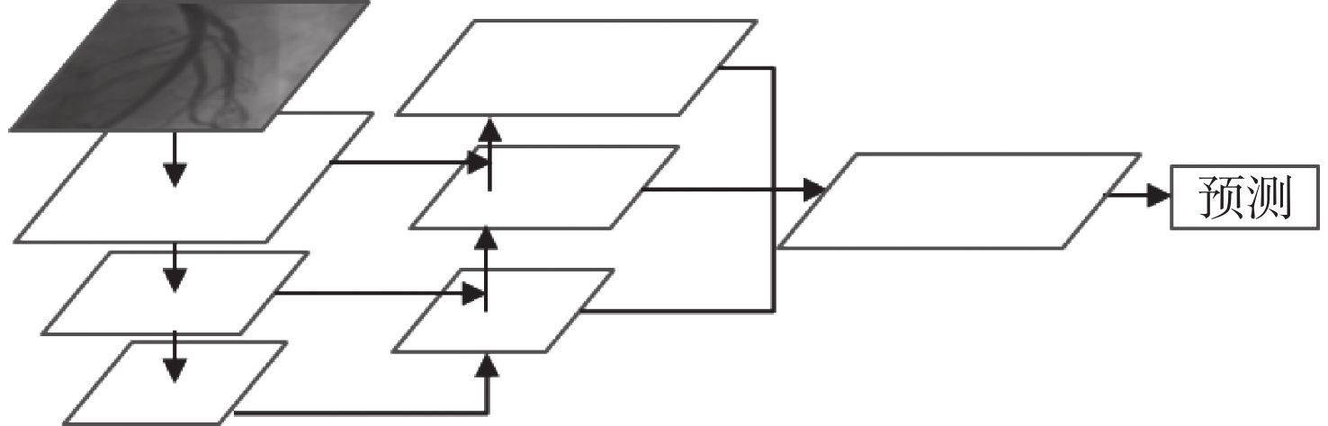针对冠脉造影图像照明不均、血管结构与背景区域对比度低、冠脉血管拓扑结构复杂等分割难点,建立了一个冠脉造影血管分割标注数据集,并在此基础上提出了一种基于特征图金字塔的冠脉造影图像血管分割模型。本文模型以U-Net网络为基础进行改进和优化,首先,将U-Net编码部分的第一个卷积层修改为一个7×7的卷积层,并提高每一层的感受野,在编解码层中引入修改后的ConvNeXt block,使得网络提取更深层次特征的能力有所提升;其次,设计分组注意力机制模块GA,并将其引入到U-Net跨连接处,对编码部分提取的特征进行增强,弥补编解码器间存在的语义差距;最后,在U-Net解码器处设计了一个特征图金字塔级联模块PFC,融合各尺度的特征图,并在PFC中每一层中加入SE注意力机制模块,用于筛选特征图中的有效信息,网络损失函数为PFC模块各层输出的加权,以监督网络各层的特征提取。本文模型在测试集上的测试结果如下:Dice系数为0.8843,Jaccard系数为0.7926。实验结果表明,相比其他常用方法,本文模型在冠脉血管分割上具有较强的鲁棒性,在低对比度下能够有效抑制噪声,对冠脉血管具有更好的分割效果。