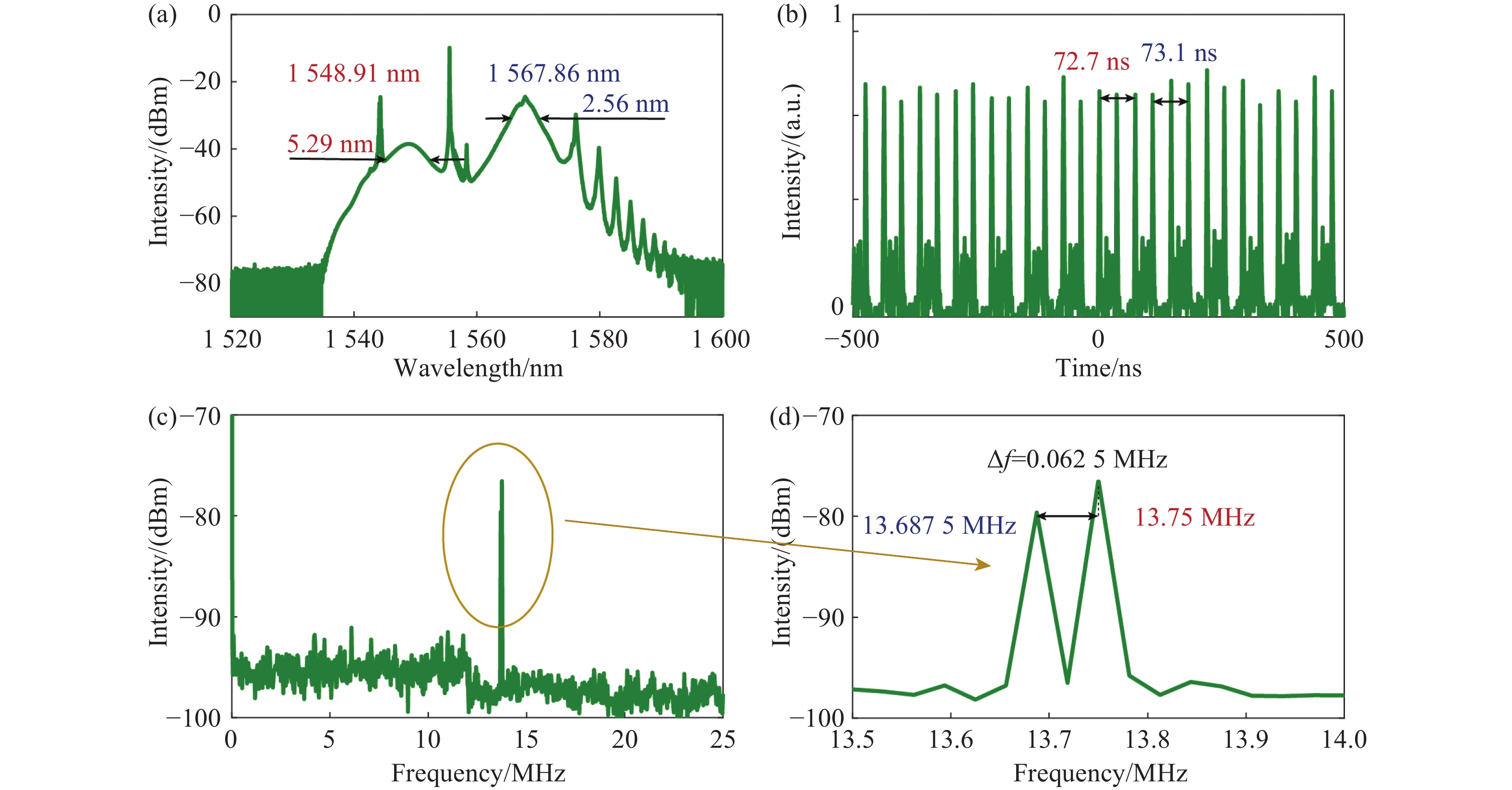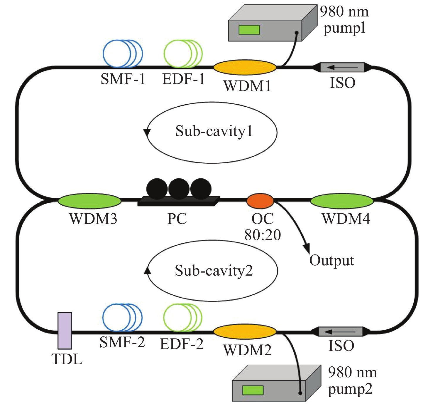 本文设计并提出了一种被动同步锁模光纤金宝搏188软件怎么用 器。该系统采用了双腔结构,并以非线性偏振旋转(NPR)机制作为锁模方式。通过协同控制两个对称子腔内的增益、偏振和光程长度,实现了稳定的同步锁模。实验表明,通过时间延迟线(TDL)可以调节子腔的重复频率,以此来实现同步锁模。实验结果揭示了多个光谱峰和等间距的脉冲序列,证实了在单一重复频率下稳定的多波长脉冲生成。这些研究在光通信、光谱分析和远程传感等领域具有广泛应用,为开发高性能多波长超短脉冲光源奠定了基础。