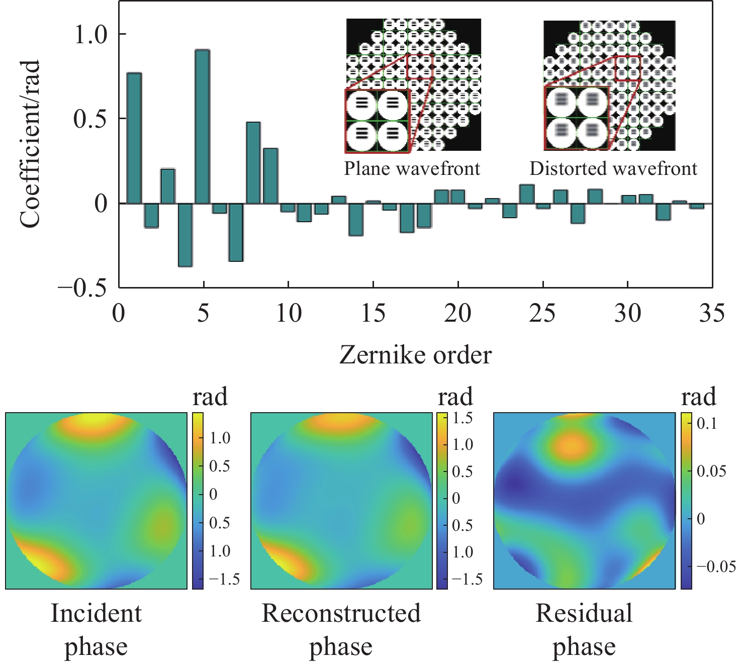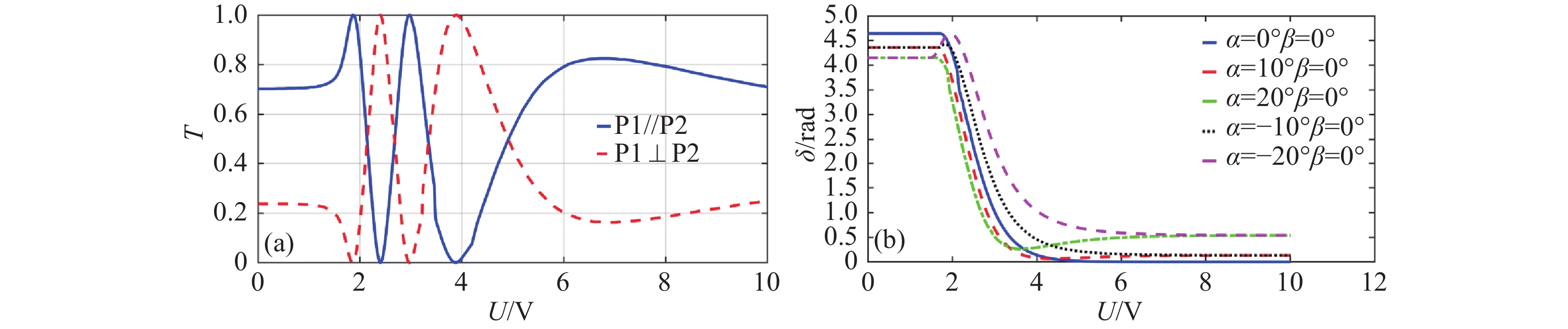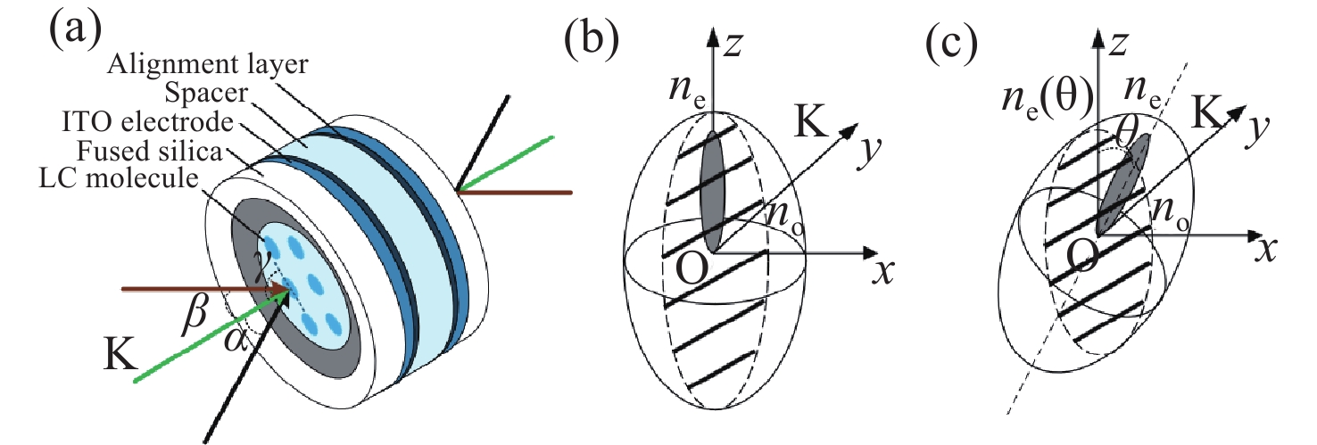 针对液晶可变相位延迟器(LCVR)入射角变化引起的偏振测量精度下降问题,本文探讨了液晶可变相位延迟器的相位延迟特性,重点分析了不同入射角对相位延迟量的影响。在垂直入射LCVR的延迟量标定基础上,推导了LCVR在不同入射角度和不同驱动电压下的相位延迟标定方程,建立相位延迟量与二维入射角(方位角α和俯仰角β)之间的关系。实验在α = 20° β = 0°,α = 0° β = 20°,及任意角度α = 15° β = 5°三种情况进行验证。结果表明,相位延迟量理论计算值与实验测量值之间的最大平均误差不超过0.059 rad,所提标定方法准确可行。该方法为LCVR在偏振成像等光学应用中的参数标定及性能提升提供了有力的支撑。
