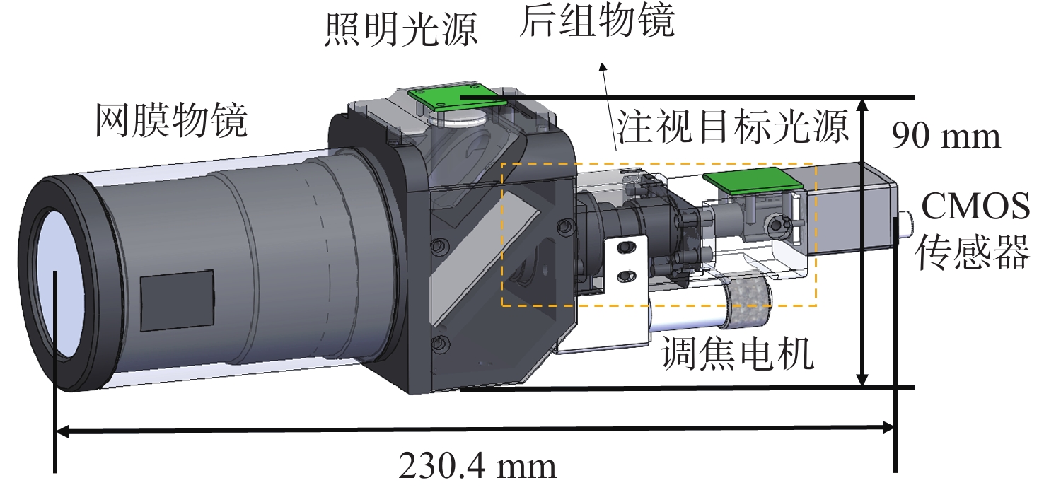 针对传统便携式免散瞳眼底相机存在照明与成像光路相互制约、角膜杂散光干扰严重、视网膜不同区域难以同时清晰成像等问题,本文提出一种新型眼底光学系统设计方案。该方案采用四点光源矩形布局与分区域亮度可调的照明方式,在3.2 mm瞳孔直径下使角膜杂散光较传统方法减少91.56%,并可实现视盘与黄斑区域的高对比度同步成像。系统通过照明光路与成像光路分离设计,结合线栅与液晶叠层偏振技术,有效抑制了光学表面反射杂光。在230.4 mm×90 mm紧凑型结构内同步实现53°大视场、±20 D屈光补偿,及6 μm的眼底分辨率。本系统通过单次拍摄人眼即可获得视盘与黄斑细节清晰、对比度优良的视网膜图像。
