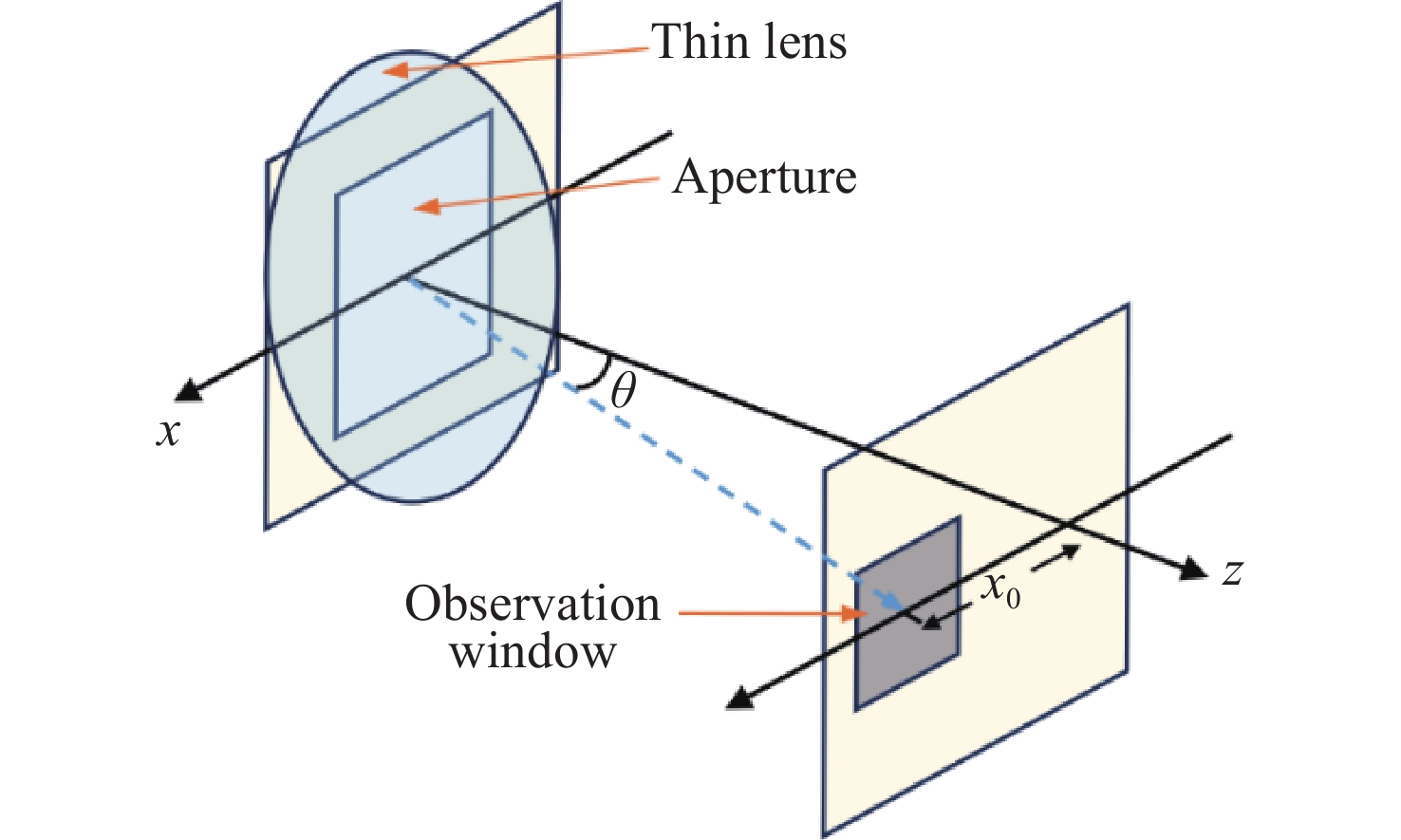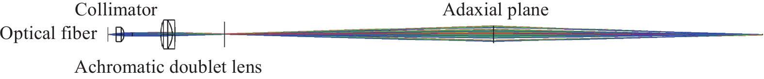 针对传统中阶梯光栅光谱仪高分辨率与微型化难以兼容的技术难题,本文提出了一种紧凑型中阶梯光栅光谱仪设计方法。该设计基于交叉Czerny-Turner型光路结构,采用透射棱镜作为交叉色散元件,通过正交色散分离不同级次光谱的同时结合反向离轴抛物面聚焦镜消除棱镜引入的像差,以实现空间布局小型化。本文对中阶梯光栅及色散棱镜参数进行设计建模,并由光程像差理论分析了聚焦光路的像差特性。仿真结果表明,抛物面-棱镜型中阶梯光栅光谱仪光谱范围为450~650 nm,数值孔径为0.05,分辨率可达0.06 nm,并且在公差范围合理情况下,系统体积仅有80 mm×44 mm×18 mm。基本能够满足便携式、高精度光谱检测的使用要求。