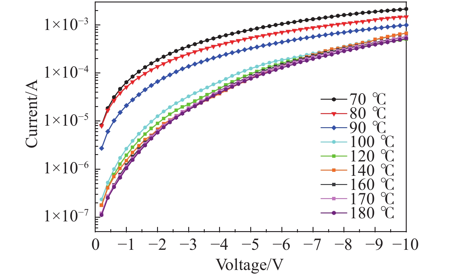 图 5  不同烘干温度条件下选择性刻蚀前大面积Gr/Si异质结的反向伏安特性曲线对比(黑暗遮光条件下测试)