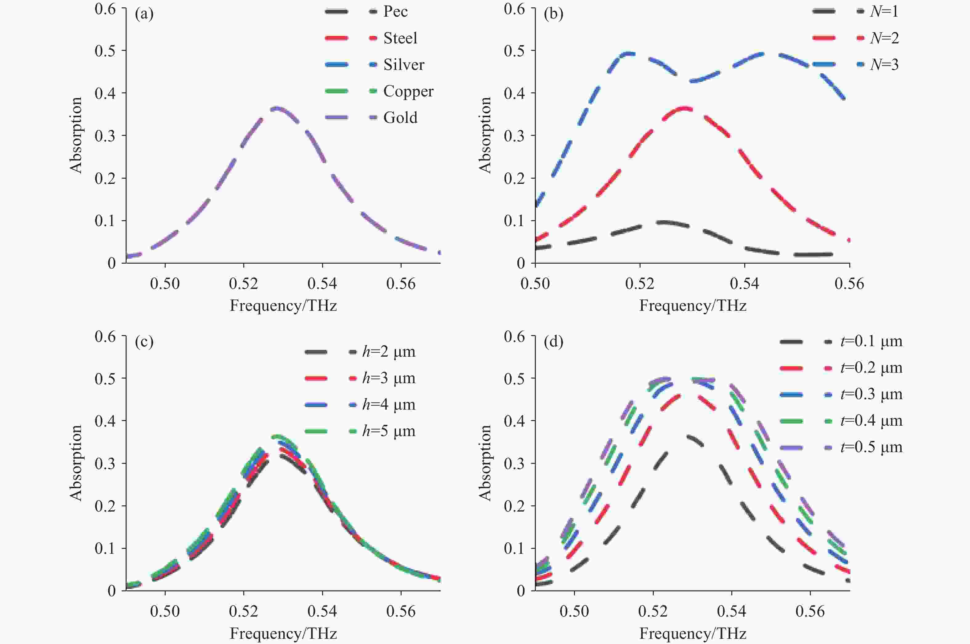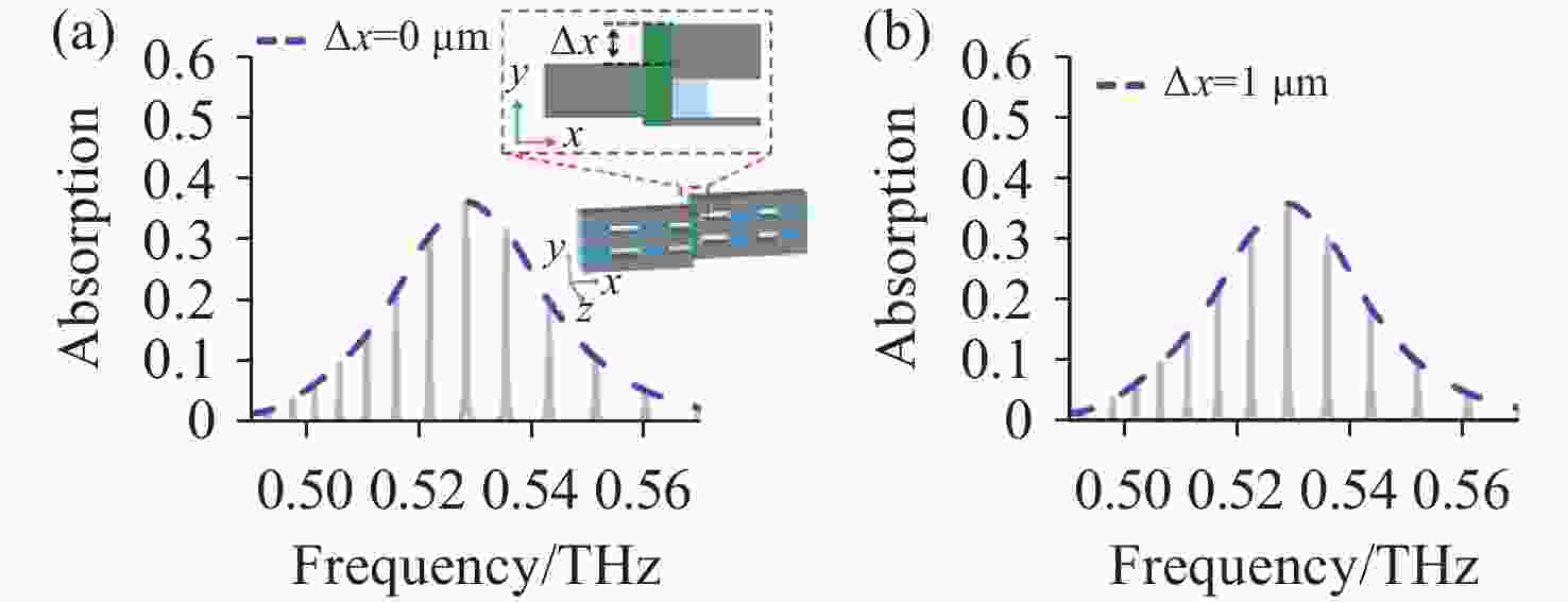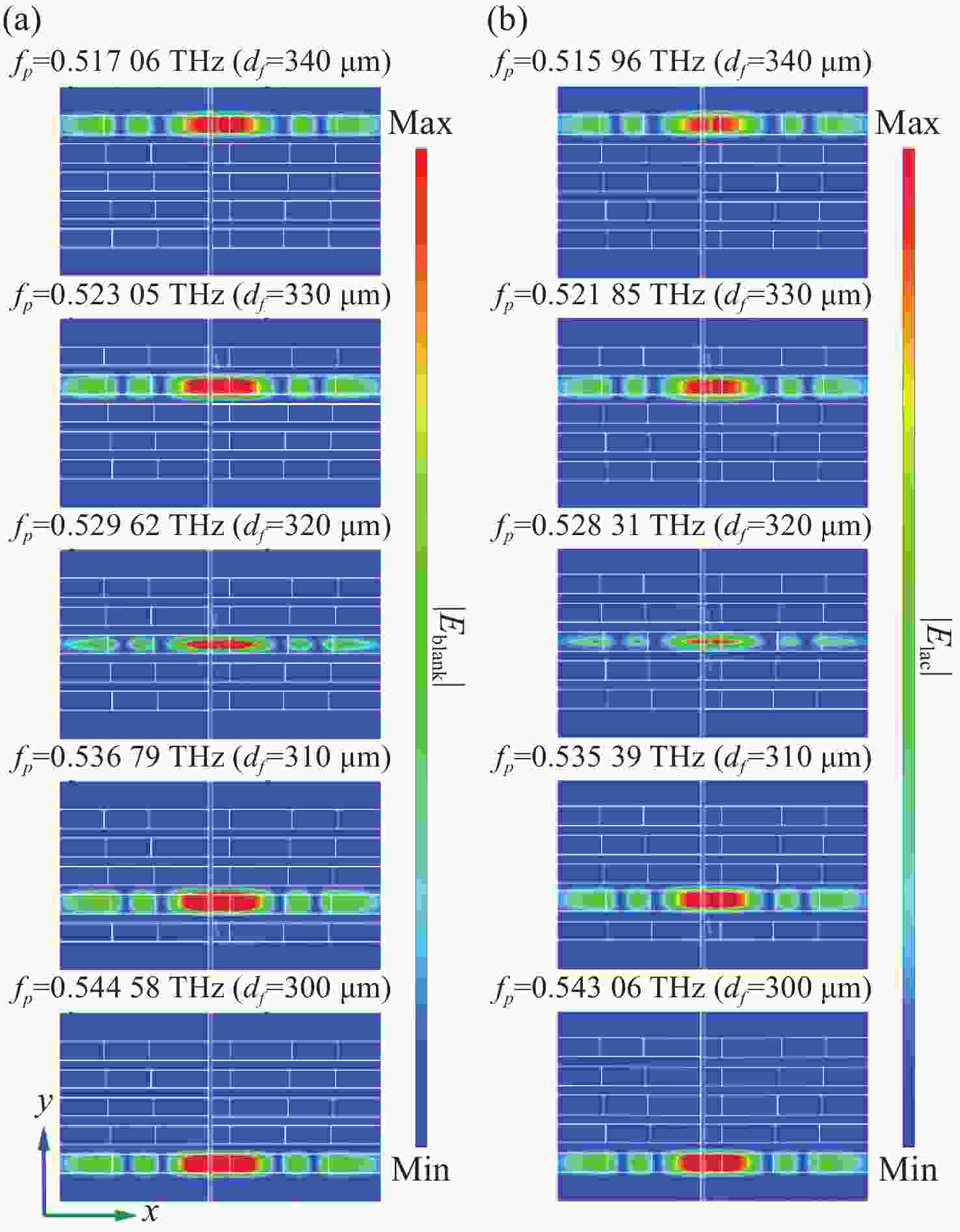 Abstract:Terahertz (THz) spectroscopy technology has demonstrated great application value in the field of organic and biological macromolecule detection. However, the traditional sample pressing method cannot be applied in the actual detection of trace analytes, and additional structures are required to enhance the interaction between the analytes and THz waves. To solve this problem, we propose a terahertz absorption spectrum enhancement structure based on stacked one-dimensional photonic crystals (1D-PCs) defect cavities. The structure employs metal parallel-plate waveguides to separate a series of one-dimensional photonic crystals (1D-PCs) with defect cavities of varying widths, and coats the sample film on a substrate that penetrates all defect cavities. The incident broadband terahertz wave can simultaneously excite multiple resonant peaks at different frequencies corresponding to the photonic crystal defect modes in different layers. The enhanced terahertz absorption spectrum of the analyte can be obtained by linking the envelope formed by these resonant absorption peaks. The simulation results show that a 0.1 μm α-lactose sample can accomplish an absorption enhancement factor of approximately 303 times in the frequency range of 0.49 to 0.57 THz. This method offers fast measurement speed and maintains a relatively low sample amount, providing an effective strategy for the enhancement detection of trace analytes by terahertz absorption spectrum.