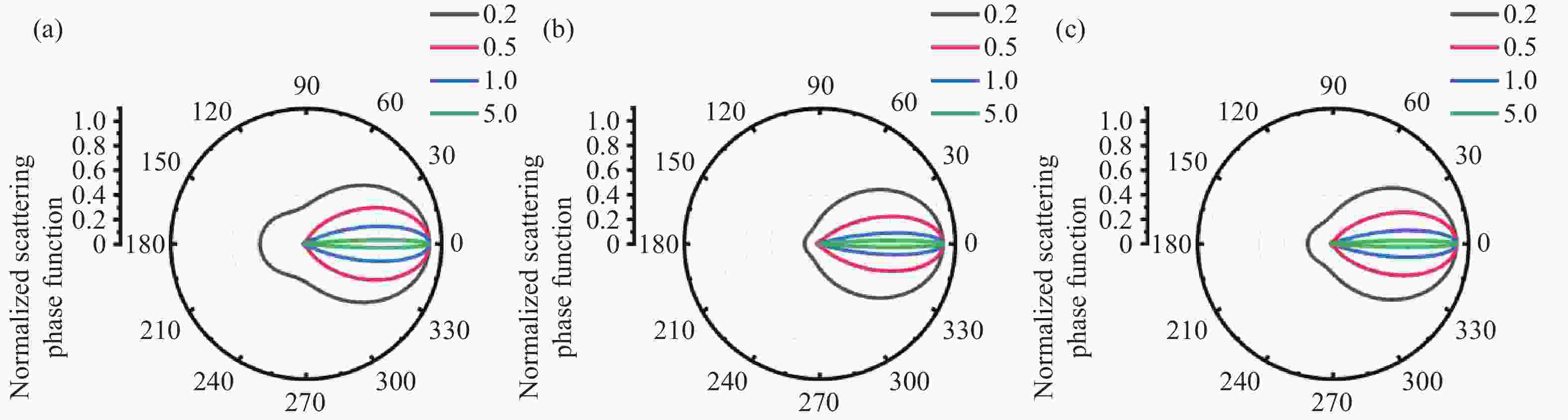 能见度绿光(517nm) $ \mu $ $ { \omega } $ $ {g} $ 1000 0.065 0.858 0.772 800 0.082 0.853 0.768 600 0.109 0.846 0.763 400 0.163 0.837 0.756 光学