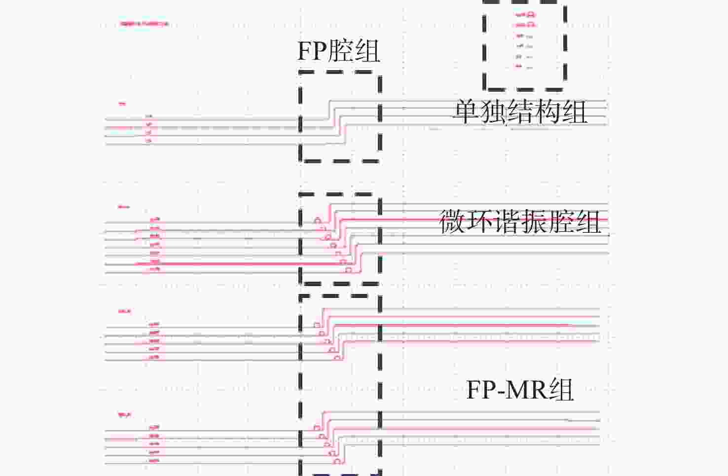本文针对一种由微环谐振腔与法布里-珀罗腔耦合构成的集成结构,开展了传输光谱特性的理论与实验研究。该结构通过在单边耦合型微环的直波导中引入光栅反射镜形成法布里-珀罗腔,在双谐振结构中实现了新颖的多腔耦合传输谱形。成功建立系统理论模型后,分析了多腔耦合传输谱形出现的条件并进行了器件参数优化。在硅基芯片上成功制备了光栅型法布里珀罗-微环耦合谐振腔器件,首次观测到与理论预测一致的多腔耦合传输谱形,包括嵌套类电磁感应透明和双法诺共振线形。实验结果表明,在3.43 dB/cm的波导损耗条件下,电磁感应透明的中心峰可实现1.40×104的品质因子,双法诺共振的斜率最高可达到37.70 dB/nm。研究结果为集成光子耦合谐振系统的机理理解提供了新视角,并为实现高集成度、高性能的光子器件平台提供了可行技术路径,在高灵敏光学传感、窄带滤波及高速调制等领域具有重要的应用潜力。