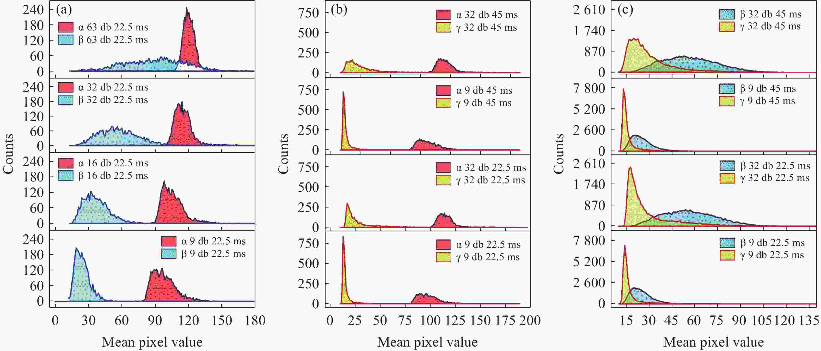 实验样品参数 参数值 传感器像素尺寸 2.2 μm × 2.2 μm 传感器分辨率 2592 (水平) ×1944 (垂直)α 放射源活度 2.9× 104 Bq (241Am) β 放射源活度 7.4 × 107 Bq (63Ni) γ 放射源活度 9 × 1014 Bq (60Co) 表 2 响应事件的甄别效果
