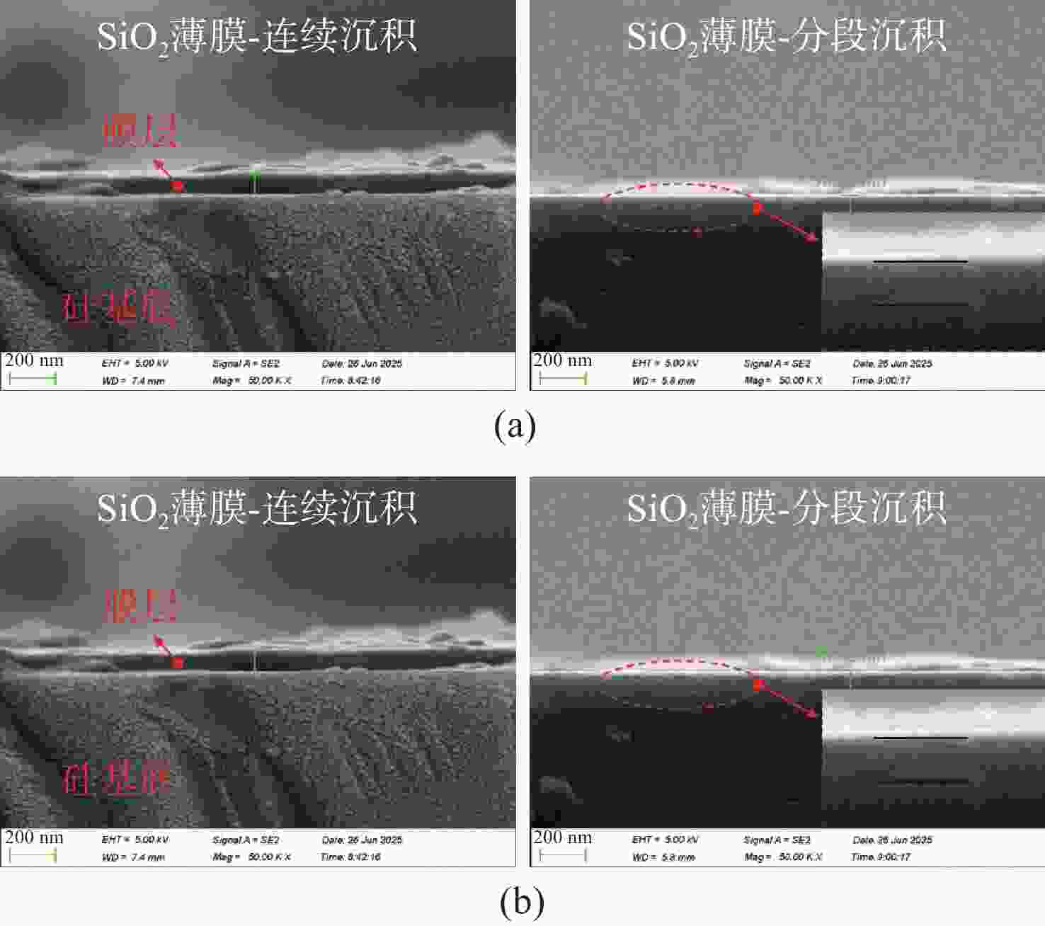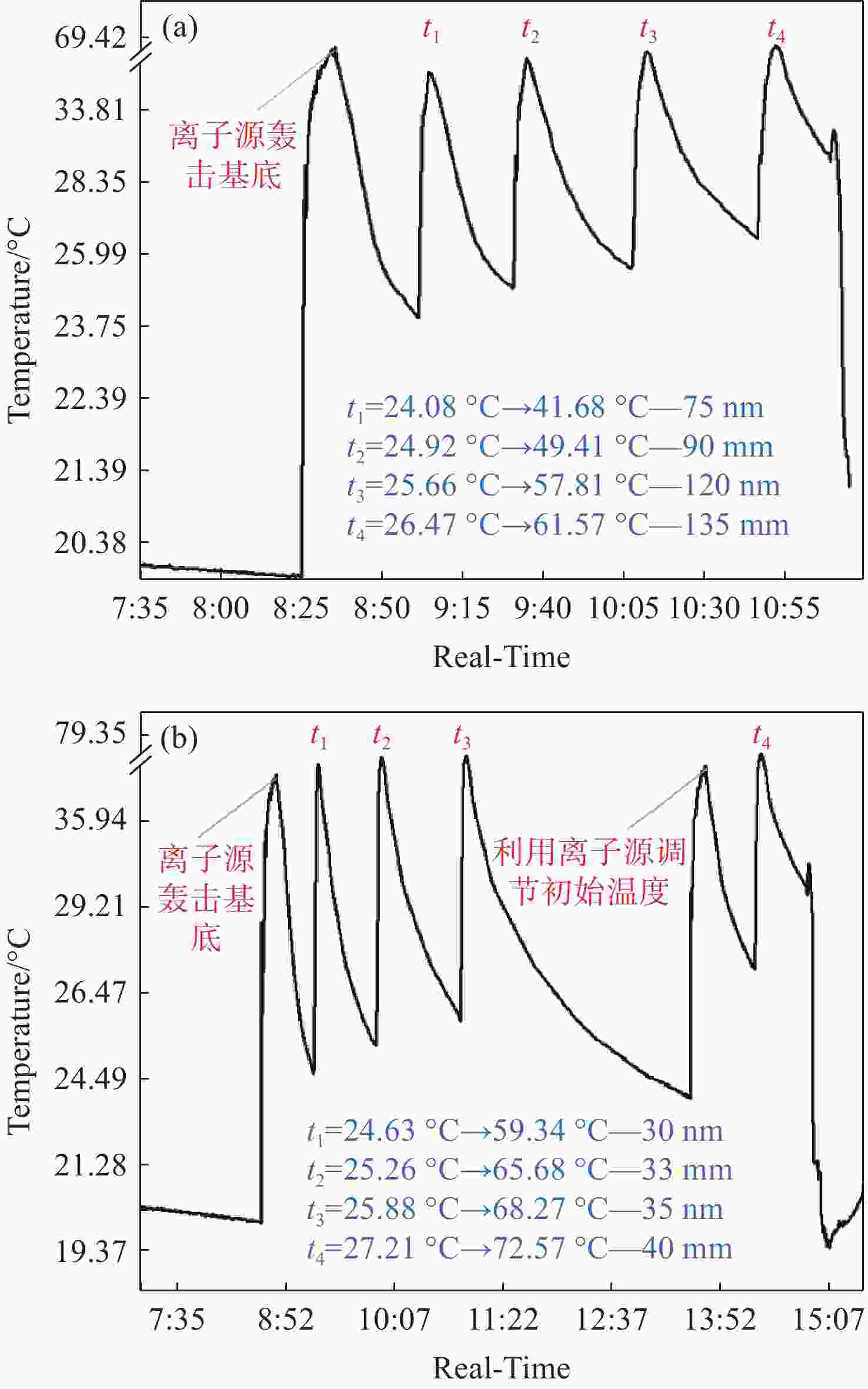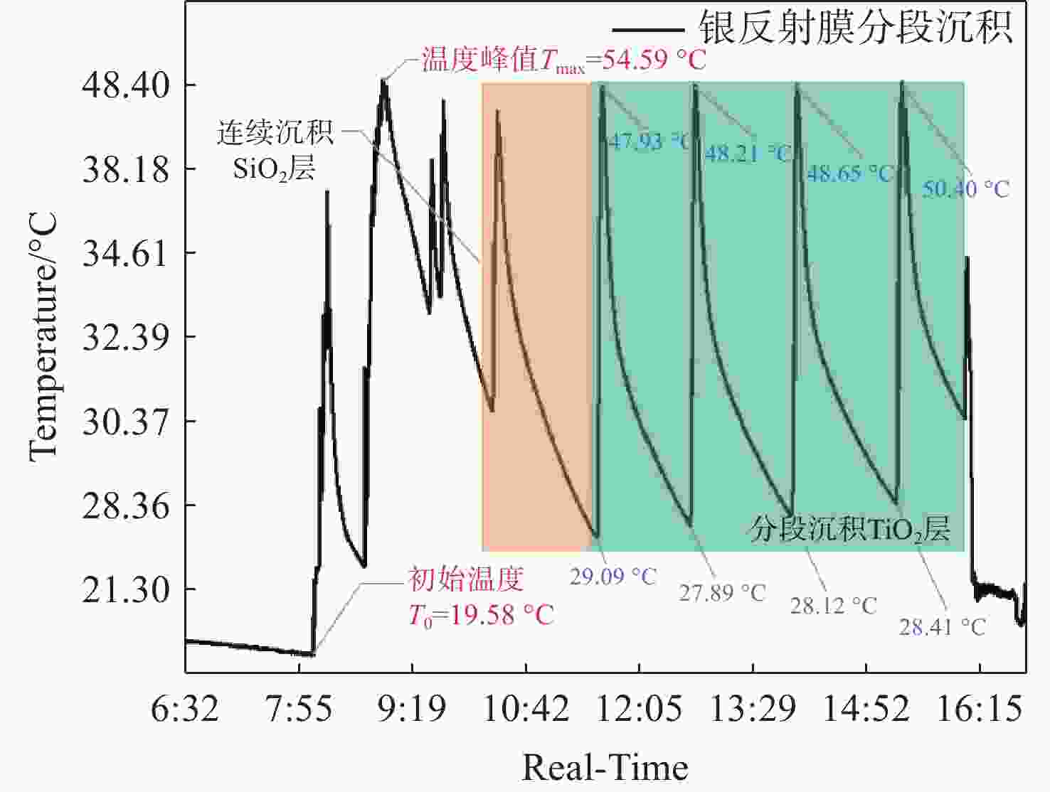 26332.4 -2015/ISO9211 -4:2012),可见光波段平均反射率与传统连续镀膜工艺相当(>99%@450−900 nm),且基片温升始终低于环氧胶临界阈值。通过离子辅助沉积与介质层封装协同作用,银膜抗氧化性与环境耐受性显著提升,满足航天光学器件在极端多物理场耦合环境下的长寿命服役要求。进一步理论分析表明,该工艺的热弛豫机制与结构调控原理具备跨场景适用性,为低温敏感基材的高性能镀膜提供了兼顾航天可靠性及工业普适性的创新解决方案。Abstract:To address the challenge of temperature rise control during the coating process for thermally sensitive substrates (e.g., epoxy adhesive-bonded structural components), this paper proposes a low-temperature electron beam evaporation coating process. Through a dynamic thermal management strategy featuring segmented deposition-cooling cycles, the performance of this process in terms of the core properties (i.e., stress, adhesion, and optical performance) of metallic reflective films-with silver films as the research subject-was systematically investigated, and the deposition process was optimized by integrating the thermal failure threshold of the epoxy adhesive. Experimental results demonstrate that under strictly controlled substrate temperature conditions, this process not only significantly reduces the residual stress of the reflective film, but also ensures that the interfacial adhesion meets the strictest Class 03 severity level specified in the national standard (GB/T 26332.4-2015/ISO 9211-4:2012), the average reflectivity in the visible wavelength range is comparable to that of the traditional continuous coating process (>99%@450−900 nm), and the substrate temperature rise remains consistently below the critical threshold of the epoxy adhesive. Through the synergistic effect of Ion-Assisted Deposition (IAD) and dielectric encapsulation, the oxidation resistance and environmental durability of the silver film are significantly improved, satisfying the long-term service requirements of aerospace optical devices under extreme multi-physics field coupled environments. Further theoretical analysis reveals that the thermal relaxation mechanisms and structural regulation principles of this process exhibit cross-scenario applicability, providing an innovative solution for high-performance coating of low-temperature-sensitive substrates that balances aerospace reliability and industrial universality.