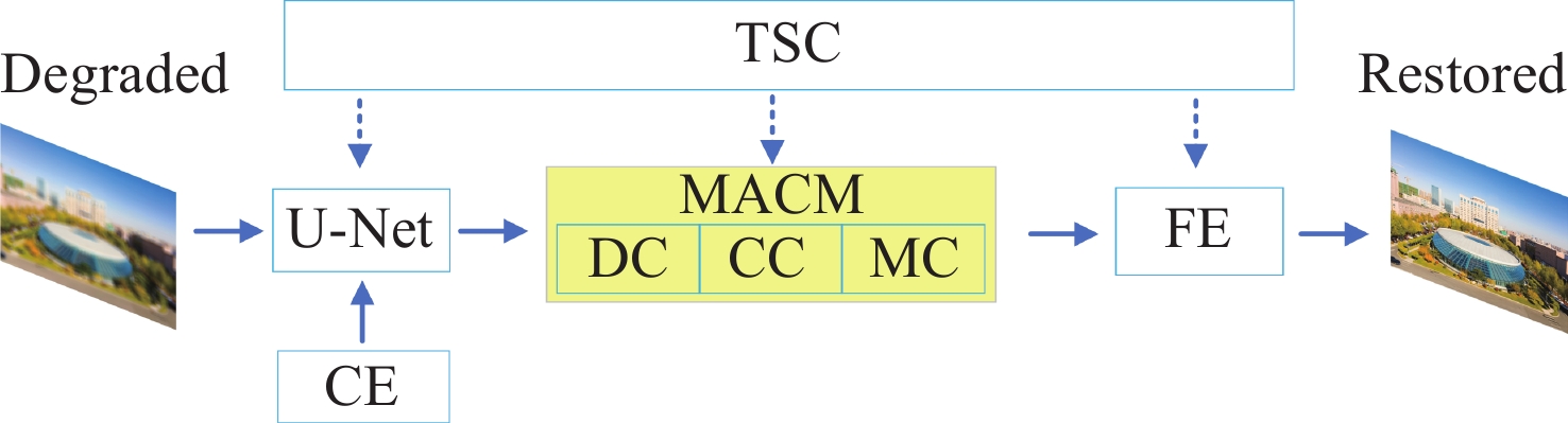 针对高性能光学系统存在的结构复杂、成本高昂的问题,本研究提出了一种面向计算校正的光学系统简化与像差校正方法。在光学设计端,构建基于像差可校正性分析的光学系统简化设计准则:优先抑制神经网络难以补偿的像差,保留易于计算校正的部分,从而在保证成像质量的前提下简化光学系统结构。在计算处理端,设计了一个包含畸变校正、色差补偿、基于物理约束点扩散函数的单色像差校正和频域增强四个模块的多模块分阶段协同校正网络。该网络由时间阶段控制器(Temporal Stage Controller,TSC)驱动,利用其动态权重调度机制进行渐进式分阶段处理,有效抑制不同像差类型相互干扰的问题。实验结果表明,简易双透镜系统经过该网络校正后的图像峰值信噪比达到31.47 dB,结构相似性达到0.95,成像质量与传统六透镜双高斯系统相当,而光学系统复杂度显著降低。消融实验验证了TSC与多模块校正架构的有效性。该研究为简化光学系统实现高质量成像提供了新的技术路径。