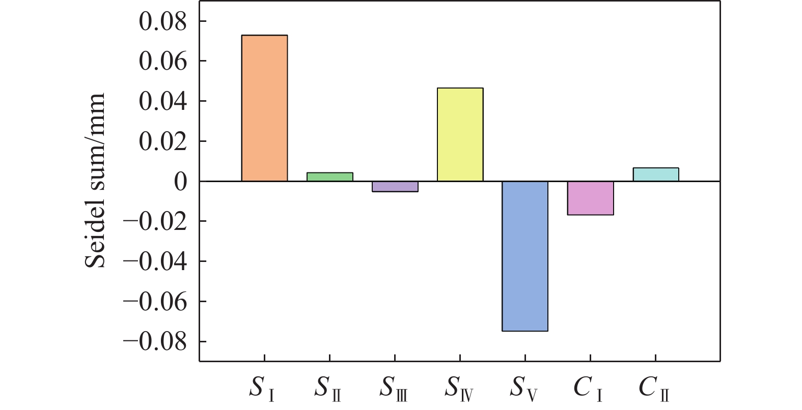 Term Expression Spherical $ W(H,\rho ,\theta )={W}_{040}{\rho }^{4} $ Coma $ W(H,\rho ,\theta )={W}_{131}H{\rho }^{3}\cos \theta $ Astigmatism $ W(H,\rho ,\theta )={W}_{222}{H}^{2}{\rho }^{2}{\cos }^{2}\theta $ Field curvature $ W(H,\rho ,\theta )={W}_{220}{H}^{2}{\rho }^{2} $ Distortion $ W(H,\rho ,\theta )={W}_{311}{H}^{3}\rho \cos \theta $ Axial color $ {\Delta }_{\lambda }{W}_{020}={W}_{020}\left({\lambda }_{F}\right)-{W}_{020}\left({\lambda }_{C}\right) $ Lateral color $ {\Delta }_{\lambda }{W}_{111}={W}_{111}\left({\lambda }_{F}\right)-{W}_{111}\left({\lambda }_{C}\right) $ 表 2 不同像差校正方法的定量对比结果
