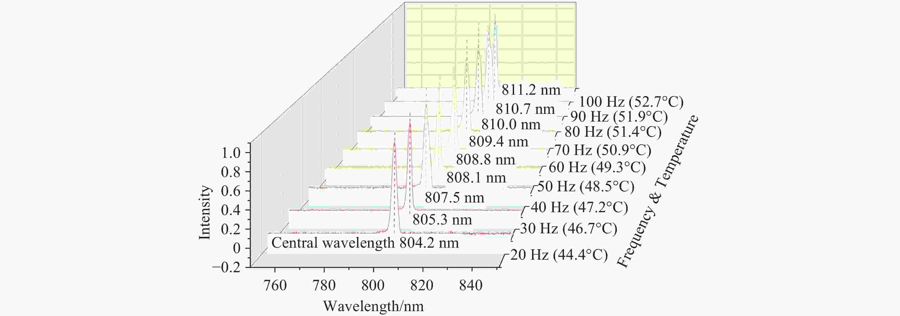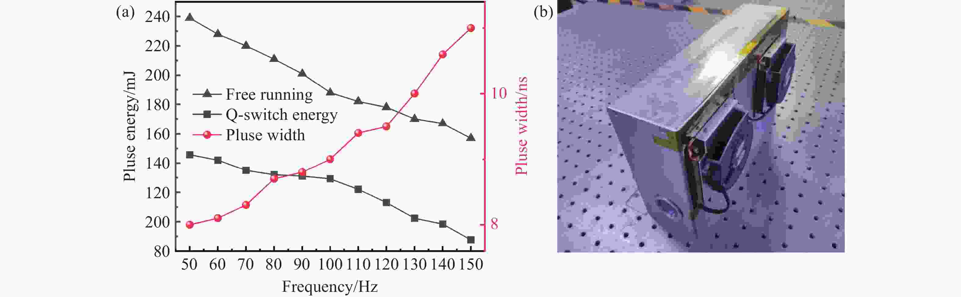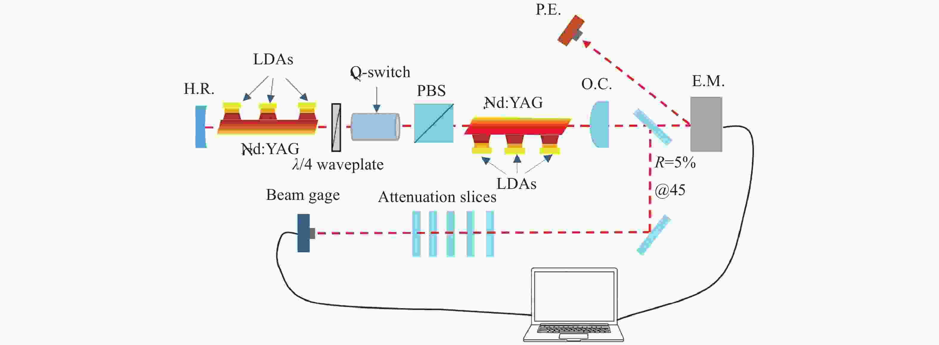 为满足特殊环境下金宝搏188软件怎么用 系统对轻量化结构与高能量脉冲输出的双重需求,本研究设计并实现了一种采用高温半导体金宝搏188软件怎么用 器阵列(Laser Diode Arrays, LDAs)侧面泵浦Zigzag Nd:YAG晶体的无水冷高能脉冲金宝搏188软件怎么用 系统。振荡光在晶体内呈现”Zigzag”路径以增加增益长度,LDAs分别对两个晶体采用轴对称式泵浦,以改善增益分布均匀性。通过隔热材料实现Nd:YAG晶体与LDAs的热隔离,并分别采用半导体制冷器(Thermoelectric Cooler, TEC)与强制风冷对Nd:YAG晶体和LDAs进行独立温控,确保热管理的稳定性与高效性。磷酸二氘钾晶体(Potassium Dideuterium Phosphate, DKDP)作为电光调Q晶体。在不使用水冷、重复频率为100 Hz(占空比为2.5%)的条件下,实现了129.2 mJ的脉冲金宝搏188软件怎么用 输出,脉冲宽度为9.0 ns,对应的光-光转换效率为9.6%,斜效率为13.1%,输出能量稳定性优于2.26%。并在150 Hz重复频率下取得了87.6 mJ的能量输出。该金宝搏188软件怎么用 系统为金宝搏188软件怎么用 测距、金宝搏188软件怎么用 照射等领域提供了一种环境适应性强、结构紧凑的新型光源解决方案。