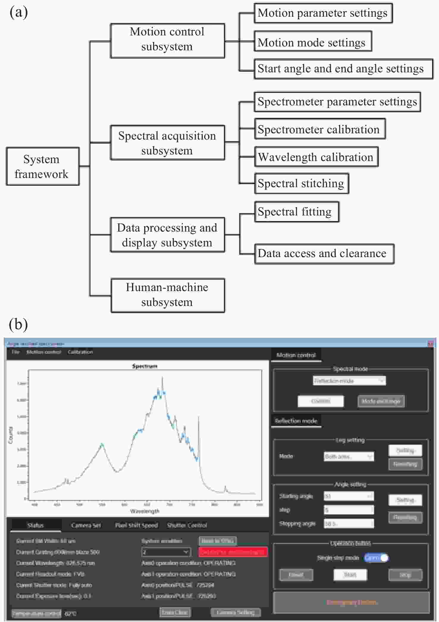 为研究表面等离激元纳米结构的微区域光学响应,本文研制了一套基于同轴转臂的微区域角分辨光谱测量系统。该系统设计了一种基于有限共轭构型的微区域远程激发与收集光路模型,实现了以32 μm直径的微区域光斑入射;搭建了基于同轴转臂的角分辨机械系统,实现了6.9° 至90° 的大范围定向角度激发。性能测试表明,系统稳定性高,最小角度分辨率达0.12°。通过对一维光栅和二维周期纳米结构的反射光谱采集实验,进一步验证了系统的可靠性,证明了微区域光斑所带来的优势,为微纳结构的角分辨光谱表征提供了有效的技术手段。