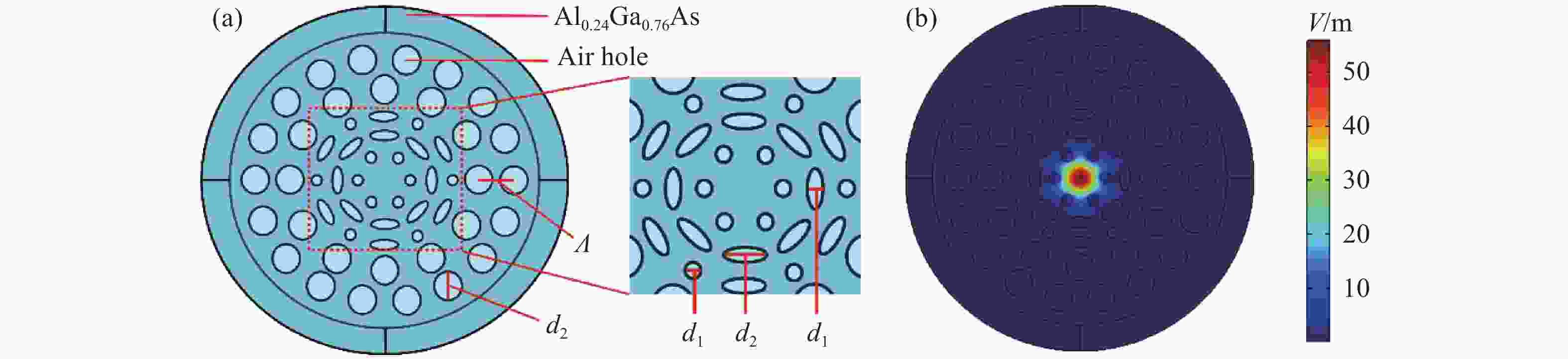 Abstract:An alternative elliptical and circle air-hole-assisted Al0.24Ga0.76As photonic crystal fiber (PCF) was proposed for generating broadband high-coherence mid-infrared supercontinuum, and the dispersion, effective mode area and nonlinear coefficient were investigated by using finite element method (FEM), the evolution of optical pulses propagating along the fiber was simulated, and the supercontinuum and the coherence were analyzed and evaluated under different pumping conditions. The results show that a supercontinuum spectrum with a spectral width of 4.852 μm can be obtained in the proposed fiber with