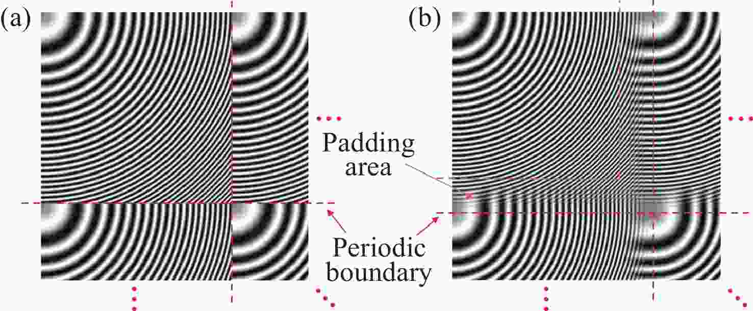 Abstract:We propose a novel fast numerical calculation method for the Rayleigh–Sommerfeld diffraction integral, which is developed based on the existing scaled convolution method. This approach enables fast calculations for general cases of off-axis scenarios where the sampling intervals and numbers of the input and observation planes are unequal. Additionally, it allows for arbitrary adjustment of the sampling interval of the impulse response function, facilitating a manual trade-off between computational load and accuracy. The errors associated with this method, which is equivalent to interpolation, primarily arise from the discontinuities of the sampling matrix of the impulse response function on its boundaries of periodic extension. To address this issue, we propose the concept of the padding function and its construction method, and evaluate its effectiveness in enhancing computational accuracy. The feasibility of the proposed method is verified by numerical simulation and compared with the direct integration DI-method in a simplified scenario. It shows that the proposed method has good computational accuracy for the general case where the sampling interval of the input and observation plane is not equal under non-near-field diffraction, and when the diffraction distance is large, although the computational accuracy of the proposed method cannot exceed that of the DI-method, the computational amount can be significantly reduced with almost no effect on the computational accuracy. This method provides a general numerical calculation scheme of diffraction in the non-near field case for areas such as computational holography.