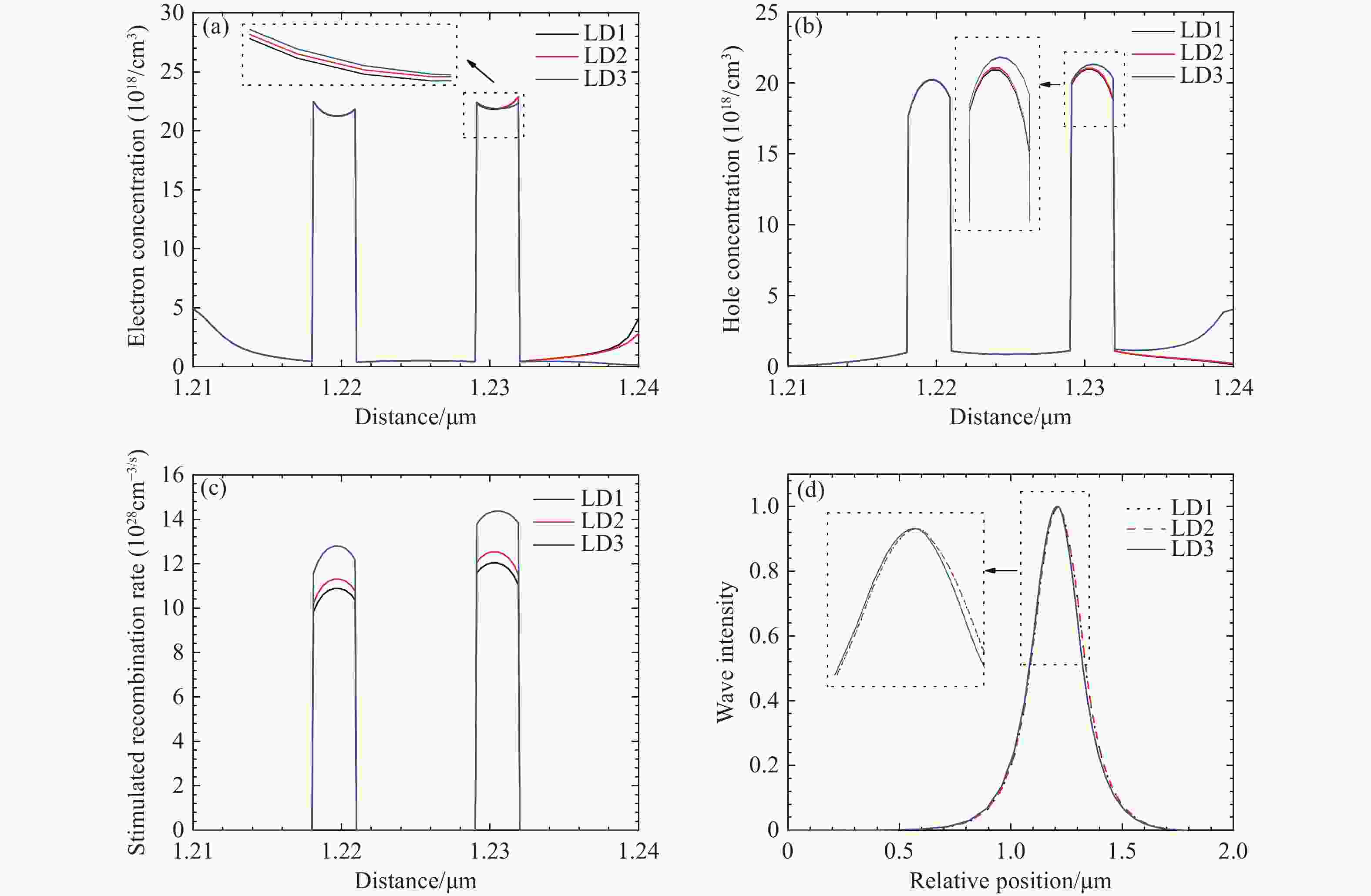 基于AlGaN的深紫外金宝搏188软件怎么用 二极管因电子泄漏和空穴注入效率低下而面临性能挑战,且传统电子阻挡层的极化效应会加剧这些问题。为克服这些限制,本文提出了一种无电子阻挡层的深紫外金宝搏188软件怎么用 二极管设计方案,在最后一个量子阱之后引入了一层1 nm厚的未掺杂Al0.8Ga0.2N薄条状层。通过PICS3D仿真,本文评估了其光学和电学特性。结果表明,有效电子势垒高度显著增加(从158.2 meV增至420.7 meV),而空穴势垒高度则从149.2 meV降至62.8 meV,这增强了空穴注入并减少了电子泄漏。优化后的结构(LD3)输出功率提升了14%,斜率效率提高至1.85 W/A,而且降低了阈值电流。该设计还减弱了量子局域斯塔克效应,并形成了双空穴积累区,从而提高了复合效率。本文的研究成果为适用于高功率应用的高性能、无EBL深紫外金宝搏188软件怎么用 器提供了一种极具前景的解决方案。