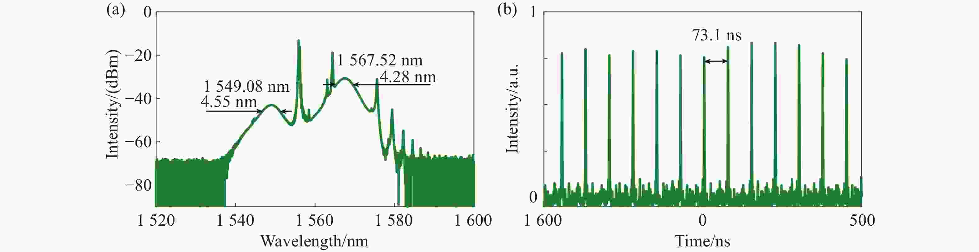 本文设计并提出了一种被动同步锁模光纤金宝搏188软件怎么用 器。该系统采用了双腔结构,并以非线性偏振旋转(NPR)机制作为锁模方式。通过协同控制两个对称子腔内的增益、偏振和光程长度,实现了稳定的同步锁模。实验表明,通过时间延迟线(TDL)可以调节子腔的重复频率,以此来实现同步锁模。实验结果揭示了多个光谱峰和等间距的脉冲序列,证实了在单一重复频率下稳定的多波长脉冲生成。这些研究在光通信、光谱分析和远程传感等领域具有广泛应用,为开发高性能多波长超短脉冲光源奠定了基础。