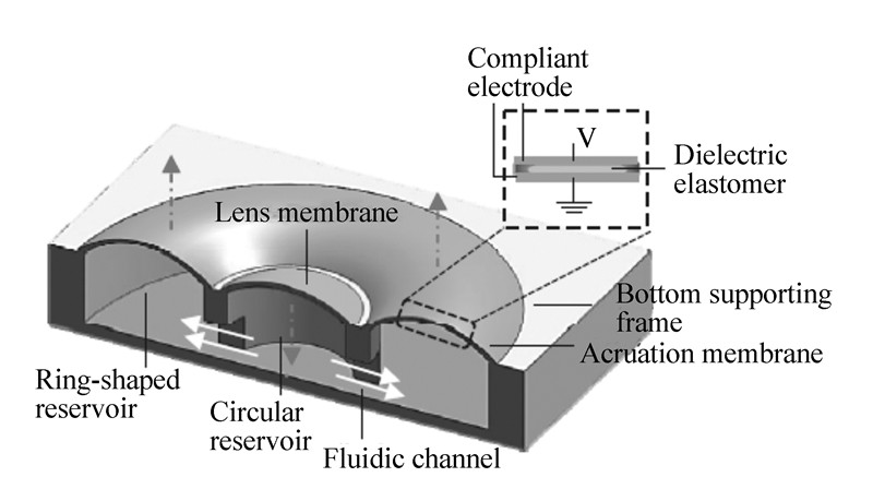 In this paper, the flexible variable-focus lens(FVFLs) is reviewed from two aspects including mechanical variable-focus lenses and electrostrictive variable-focus lenses. The gravity effect and temperature change exist in most FVFLs. Mechanical variable-focus lenses exhibit very large focal length tunability, but their use is limited by their slow response speed. Electrostrictive variable-focus lenses have simple and compact structure, high response speed. Providing a solution for minimizing optical aberrations and maximizing the tunability of focal length or field of view has drawn much attention in recent years. Exploring new driving technology and developing intelligent focus tunable system with low power comsumption will be the main focus of FVFLs in future.
