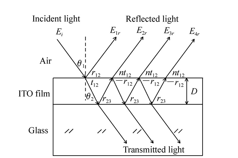 The transparent electrode thin film of ITO is widely used to implement the touch function of flat panel display(FPD). Its physical thickness has a great impact on touch panel operation, therefore it is very important to measure the thickness of transparent electrode film. The frequency domain analysis algorithm has been used to measure film thickness. However, it is difficult to measure the very thin film. A new algorithm is proposed to measure the film thickness ranged from 20 nm to 150 nm. This algorithm aims to get the precision phase distribution due to multiple reflection of film. The experimental results show that the thickness of the measured transparent electrode film is 90-104 nm, which illustrates that there is no difference from the calibration value. This result proves that the new algorithm can be used to measure the very thin film of ITO within 100 nm.