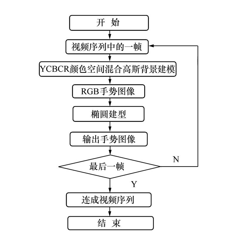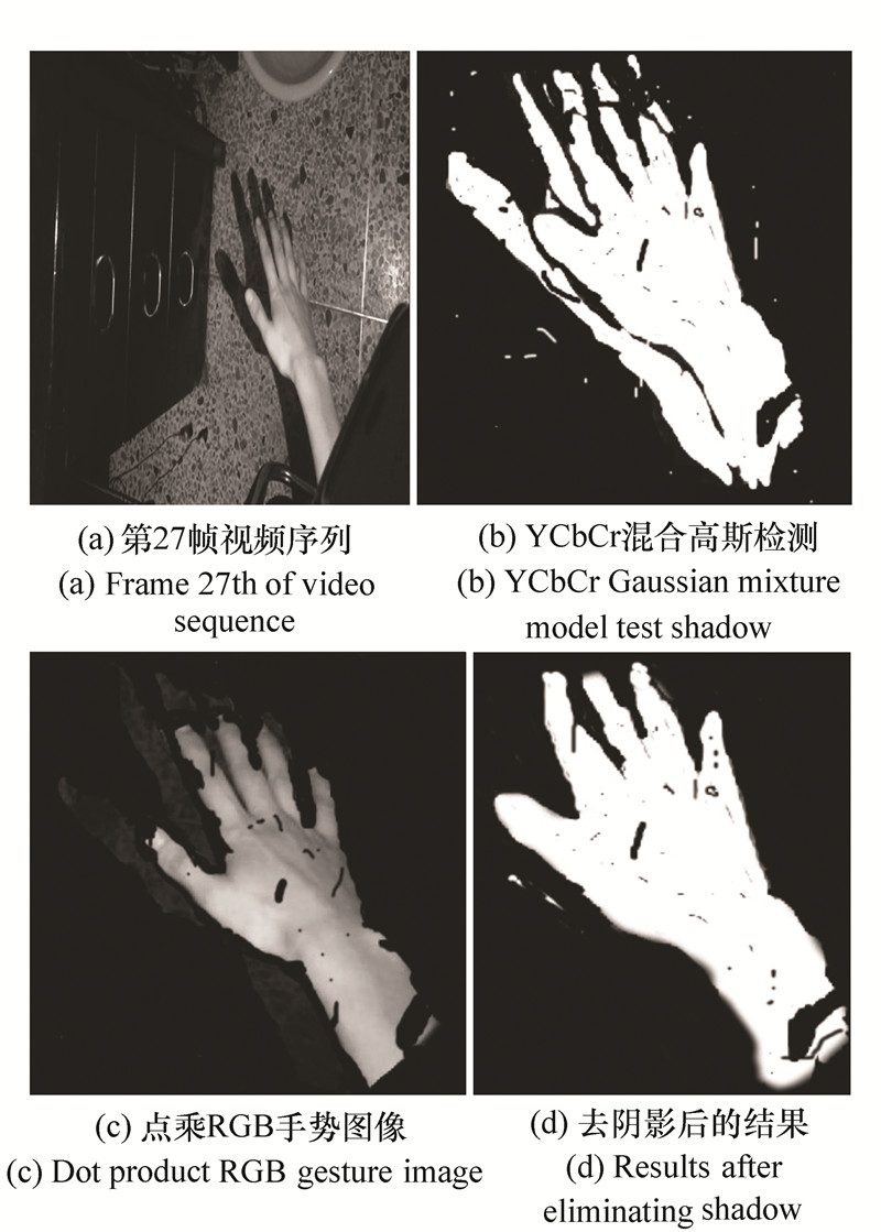 To improve the accuracy of the dynamic gesture detection, Gaussian mixture background modeling based on YCbCr color space is applied to the dynamic gesture recognition, and the effective gesture shadow elimination algorithm is proposed. First of all, the gesture image is cut out from video frame to be detected, and space ellipse fitting is developed in YCb'Cr' color. Oval color model is established statistically, and then dynamic gesture in the YCbCr color space through Gaussian mixture background modeling is detected. Original image is dotted product to get the gesture RGB image containing shadows. The shadows contained in the detected gestures image were eliminated by using ellopse color model, and finally we take gesture images together into a video sequence. Experimental results show that in the algorithm of dynamic gesture detection rate is 91.4% under a complex background, about 10% higher than that by the traditional methods. So it can meet the basic requirements of dynamic gesture detection, and has a high practical value.