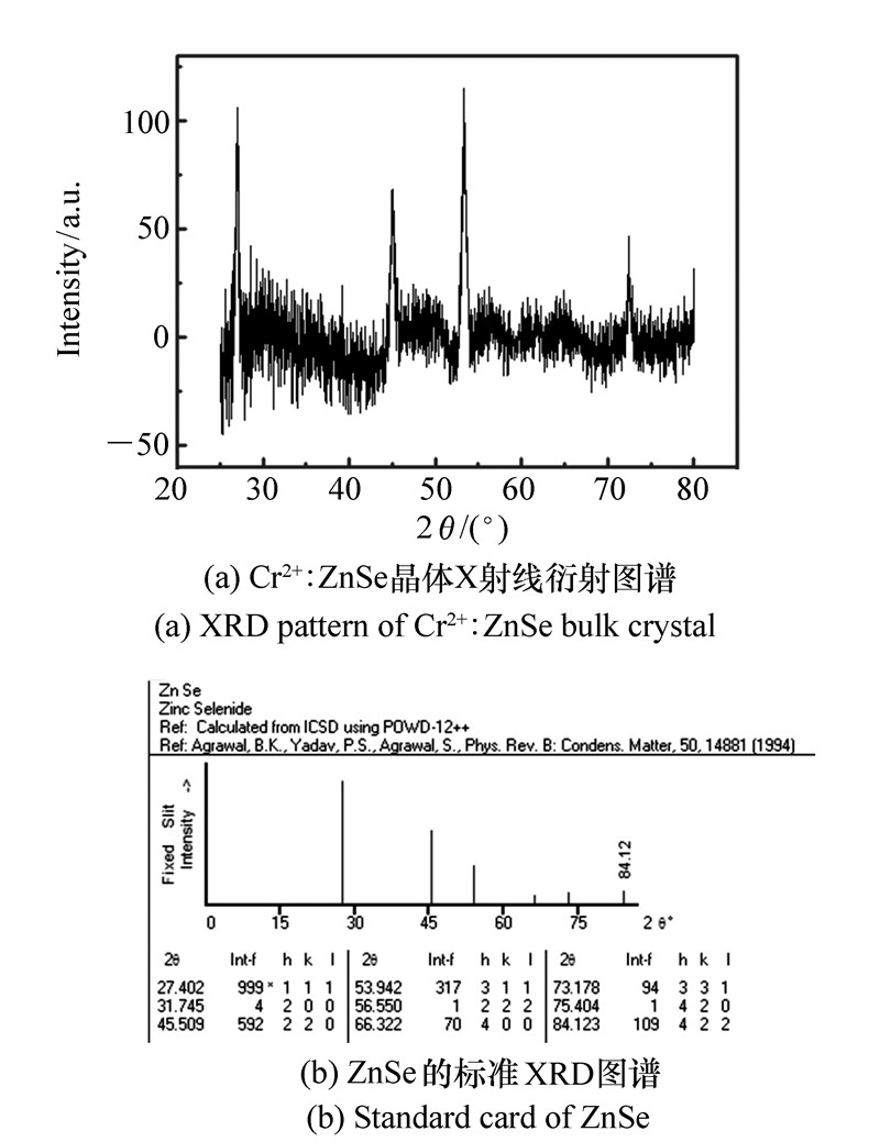 In order to obtain single crystal with brilliant quality and large size to accommodate the requirement of high-power solid state Mid-IR laser, the Cr2+: ZnSe single crystal is grown in the all-graphite cavity with the surrounding of super-high pressure and temperature by the method of Bridgeman. By means of the X-ray Diffraction(XRD), Transmission Electron Microscope(TEM), absorption and fluorescence spectra, the structure, optical properties of the crystal are investigated. Meanwhile, energy level structure and transition mechanism of Cr2+ in the Cr2+: ZnSe crystal are also studied. Experiment results show that the as-grown Cr2+: ZnSe crystal with well-distributed structure and stable physical properties has much wider spectral range of 1.9-3.0 μm range under the pumping source of 1.97 μm laser. It is applicable to obtain a mid-IR laser at the range of 2-3 μm.
