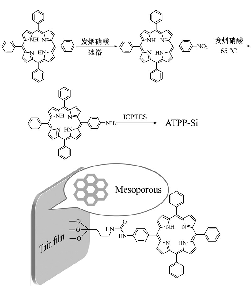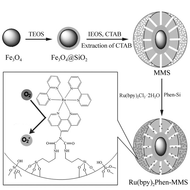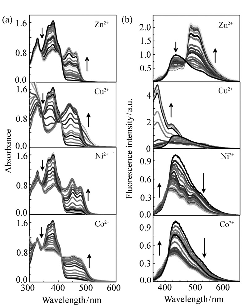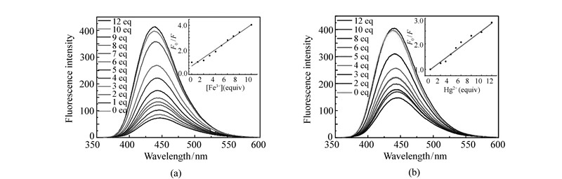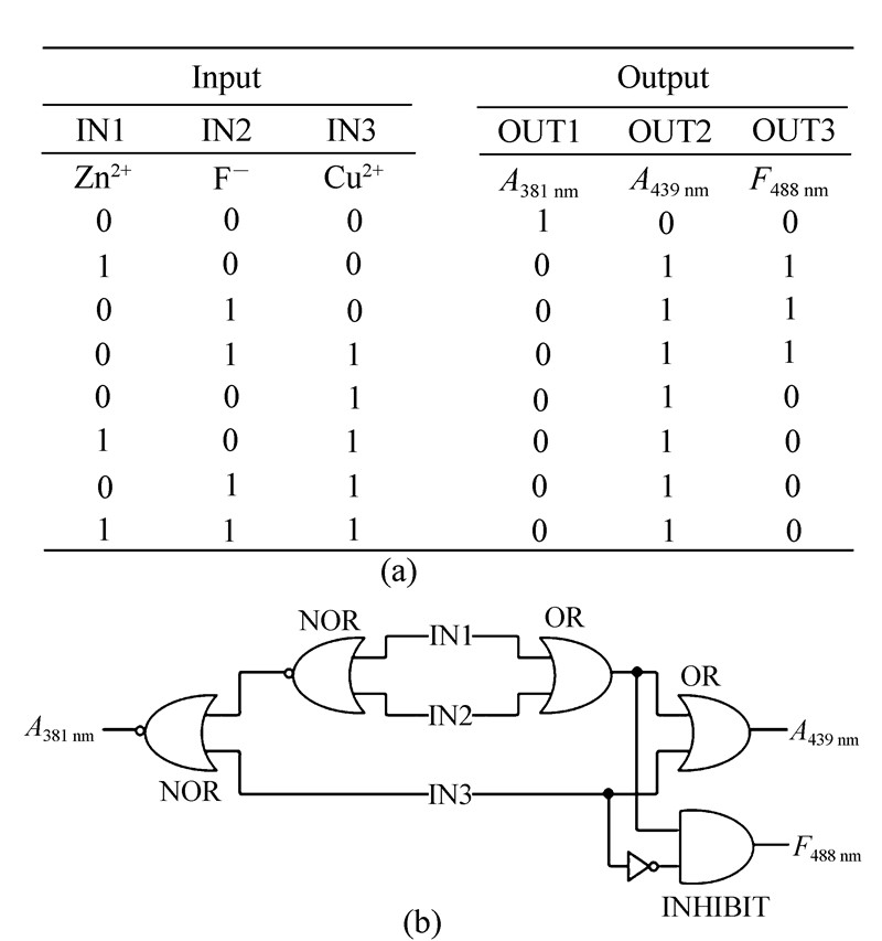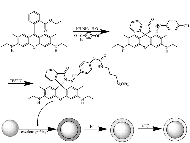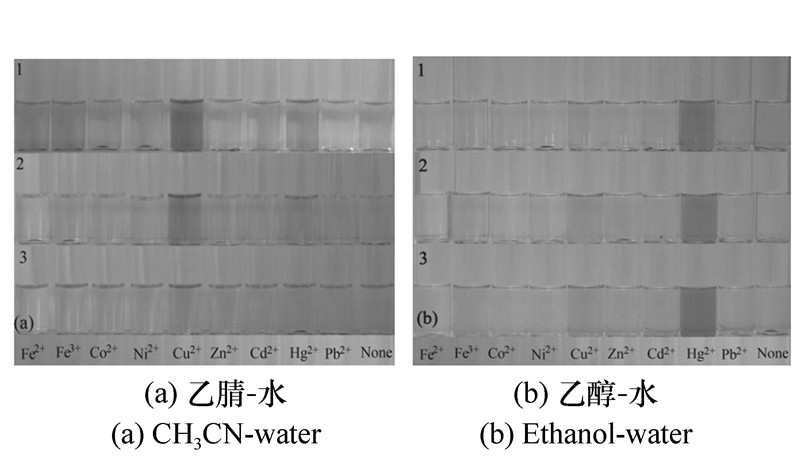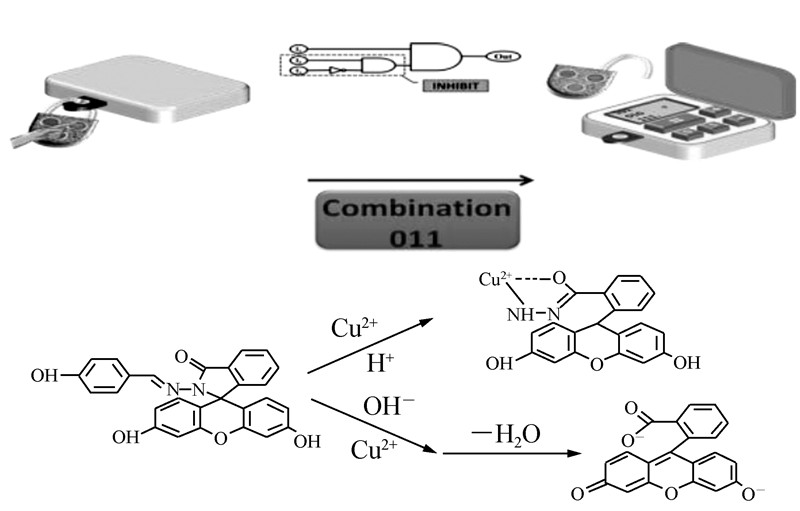 As one of research hotspots, organic-inorganic nanocomposite materials combine virtues from both components at microcosmic level, achieving desired function and performance. This paper prepared a series of probe materials for Hg(Ⅱ), Cu(Ⅰ), Fe(Ⅲ) etc. using starting chemicals of rhodamine, triphenylamine and emissive metal complexes. These probes were embedded into proper matrixes to construct composite materials, realizing naked-eye colourimetric sensing towards metal and anion ions. Different ions and their sequence led to spectral variations of absorption and emission spectra. Molecular logic gates were simulated using metal ions or oxygen as input, absorption/emission as output, respectively, widening application of these probes. Hexagonal β-NaYF4 nanocystals were prepared and used as excitation source to eliminate background light interference. Probe molecules were covalently grafted onto these silica coated β-NaYF4 nanocystals, giving core-shell structured up-conversion sensing composites. Upon IR radiation, up-conversion green light was observed, showing good selectivity and sensitivity to metal ions with linear response. Above up-conversion and sensing features made corresponding nanocomposites a promising candidate in analytical chemistry and biochemistry.