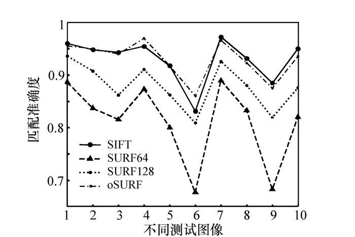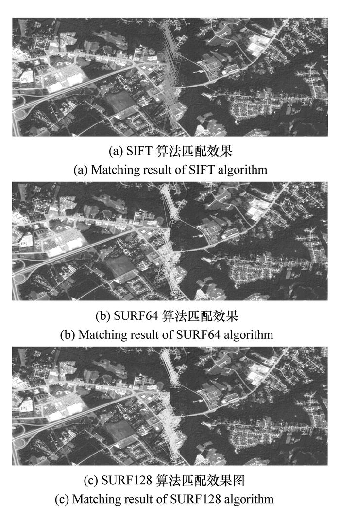 Image matching is the basis of image rectification and mosaic. Because of higher features similarity and smaller overlapped area than ordinary images, the remote sensing images have higher requirements on matching algorithm in both performance and iteration speed. The performances in three aspects:feature detection, feature description and feature matching, are analyzed between the SIFT algorithm and the SURF algorithm in terms of speed and accuracy. The requirements of the degree of overlapping between remote sensing images and the matching distance of the genvector is discussed as well. In view of the characteristic that SURF algorithm is sensitive to the error in feature detection, oSURF algorithm is presented in this paper. Finally, the advantages and disadvantages of each algorithm are analyzed by using satellite remote sensing data of level 1A. The results show that iteration speed of SURF algorithm is three times faster than SIFT algorithm. Under the same matching rate, the width of overlapped area on image required in SURF algorithm is 1.25 times of the dimension of genvector but 1.5 times in SIFT, and the accuracy of oSURF algorithm is increased by 5%~10% compared with SURF algorithm in the same computation speed, which indicate that oSURF is more suitable for remote sensing image stitching.