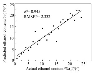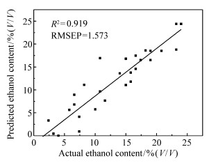 Ethanol gasoline is a new type of clean fuel, and the content of fuel ethanol in ethanol gasoline affects the performance of the engine. In order to ensure the reliability of engine operation, the ethanol content of ethanol gasoline should be detected quickly and accurately. This paper uses mid-infrared spectroscopy to quantitatively analyze the collected spectral data of ethanol gasoline. First, the original spectral data were preprocessed using multiple scattering correction(MSC), baseline correction, first derivative, second derivative and other pretreatment methods. Then, the predictive model of ethanol content in ethanol gasoline is established using ELM, LSSVM and PLS. By comparing the predictive ability of the three modeling methods, it is found that the accuracy of PLS method is higher than the other two methods. The model determination factor R2 is 0.958, RMSEP is 1.479%(V/V, volume ratio). The mid-infrared spectroscopy provides a new idea for the rapid and accurate detection of ethanol content of in ethanol gasoline.