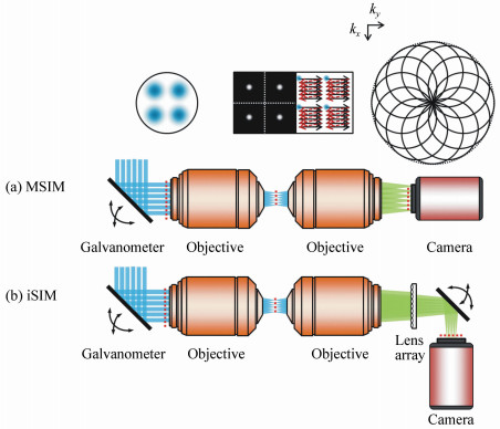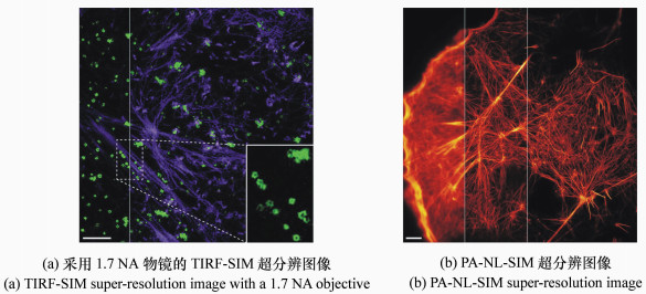 Structured illumination microscopy(SIM) is capable of providing super-resolution imaging. It breaks the diffraction limit by moving the high-frequency information of objects into the detectable frequency band of the optical imaging system via frequency mixing. Due to its attractive advantages, such as low intensity illumination, independence of particular fluorescent dyes, and rapid wide-field imaging capability, SIM has become the most popular technique for super-resolution imaging of living cells. This paper first systematically summarizes advances in the development of SIM and introduces corresponding principles at the same time. Then, two novel techniques of SIM developed by our group, including the single-photon excited super-resolution microscopy based on spectral unmixing and the two-photon excited super-resolution microscopy combined with adaptive optics, are particularly introduced in detail. At last, the recent applications and future directions of SIM in biological imaging are briefly discussed.
