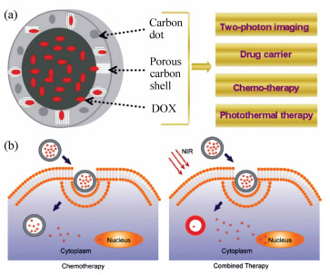 As an emerging carbon nanomaterial, carbon nanodots(CNDs) have many advantages such as low preparation cost, small size, low toxicity, high biocompatibility, good water solubility, easy modification, unique photophysical properties, and exhibit unique advantages and application prospects in the field of biomedicine. Taking advantage of the abundant surface functional groups, carbon nanodots can interact with functional theranostic agents such as targeting ligands, contrast agents in medical imaging, nucleic acids, chemical drugs, photosensitizers, and photothermal conversion reagents to form composites. Currently, bioluminescent imaging applications of carbon nanodots and their composites in biomedical theranostic fields such as medical imaging, gene therapy, chemotherapy, photothermal therapy, and photodynamic therapy are widely studied and reported. These researches are of great significance to the development of medical theranostic reagents based on carbon nanodots and their clinical advancement, and provide a novel drug system for the advancement of individualized, visualized, non-invasive, and minimally invasive diagnosis and treatment of major human diseases. This paper focuses on the design, construction and performance of carbon nanodots and their composites used in the field of theranostics. In addition, the research progress of the reported carbon nanodots based theranostic reagents in the biomedical field is discussed and summarized.
